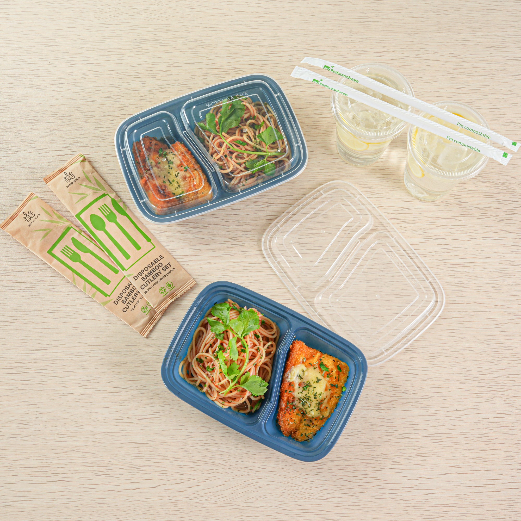 - 2-compartment design ensures separation of different food items and prevents mixing