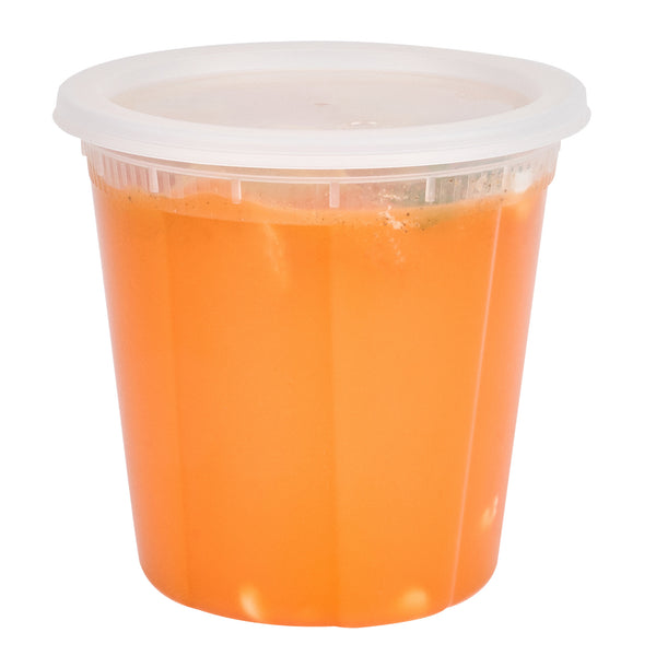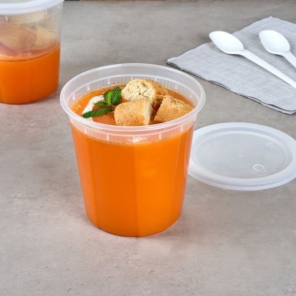 32 OZ ROUND CLEAR PLASTIC SOUP CONTAINER - WITH LID, MICROWAVABLE