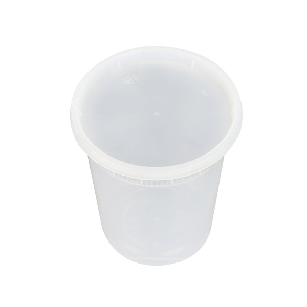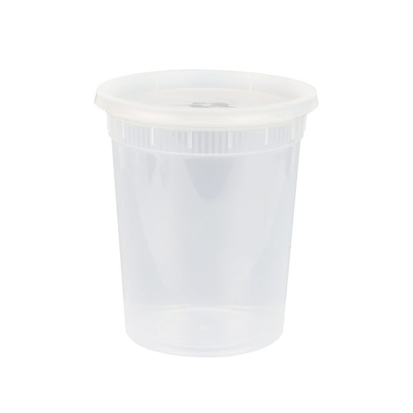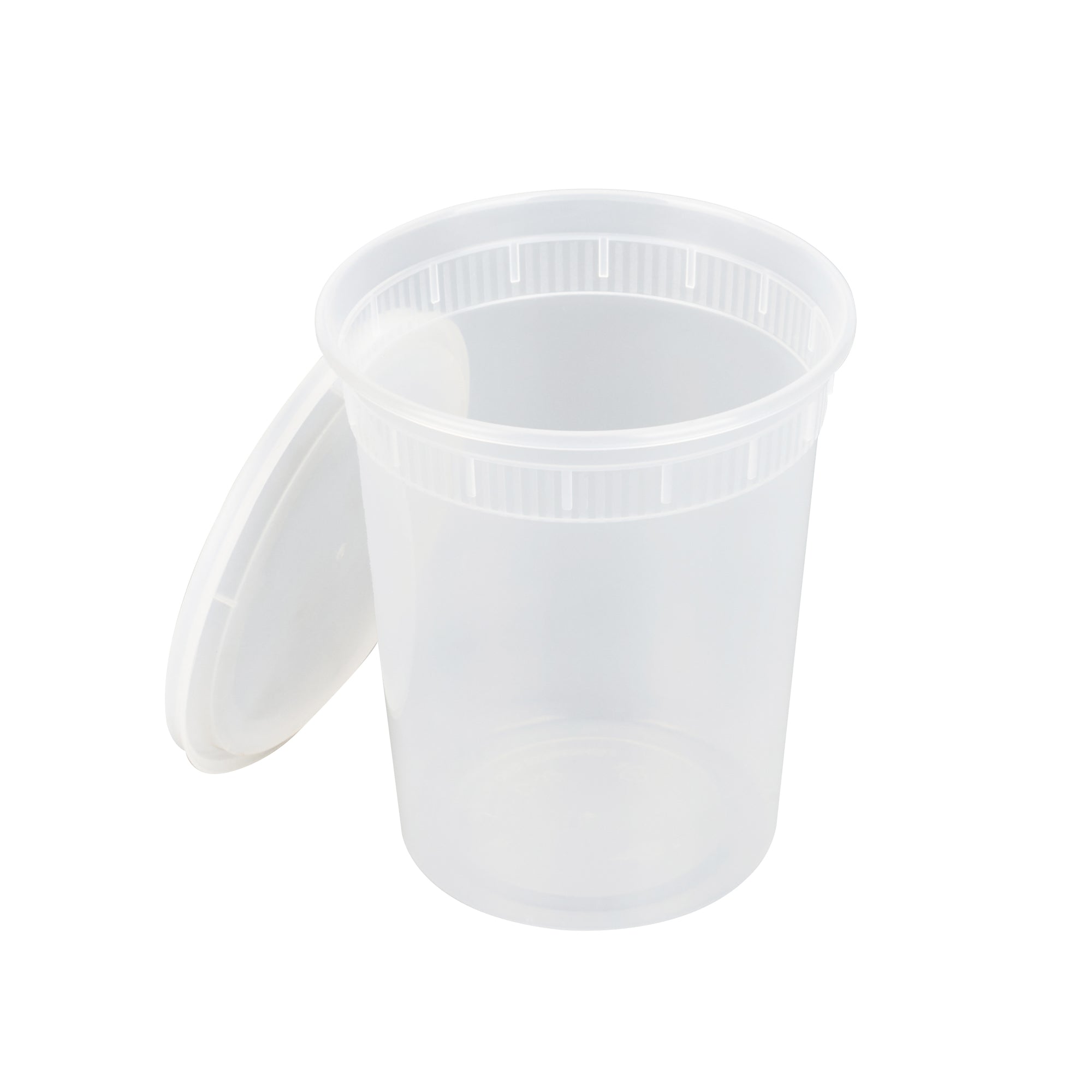 32 OZ ROUND CLEAR PLASTIC SOUP CONTAINER - WITH LID, MICROWAVABLE
