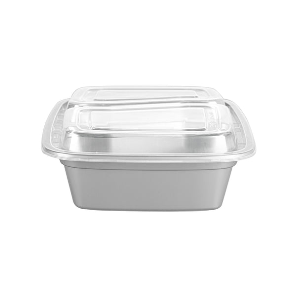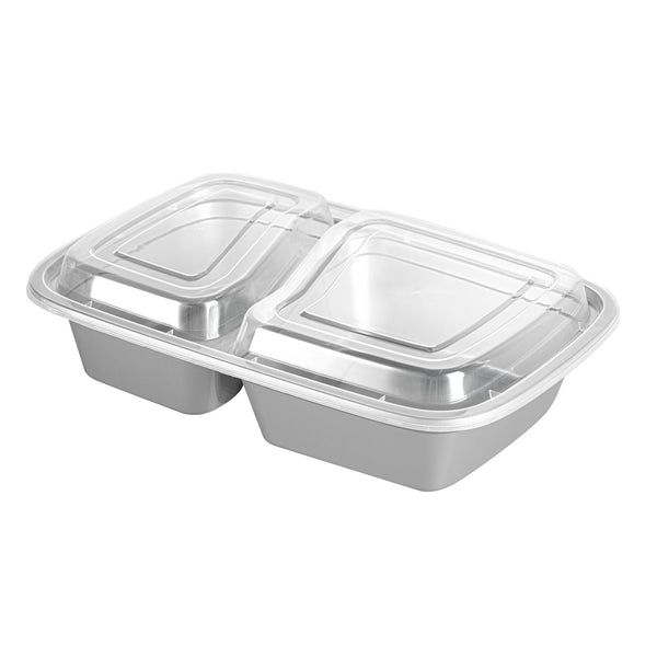 32 OZ SILVER PLASTIC 2 COMPARTMENT FOOD CONTAINER
