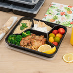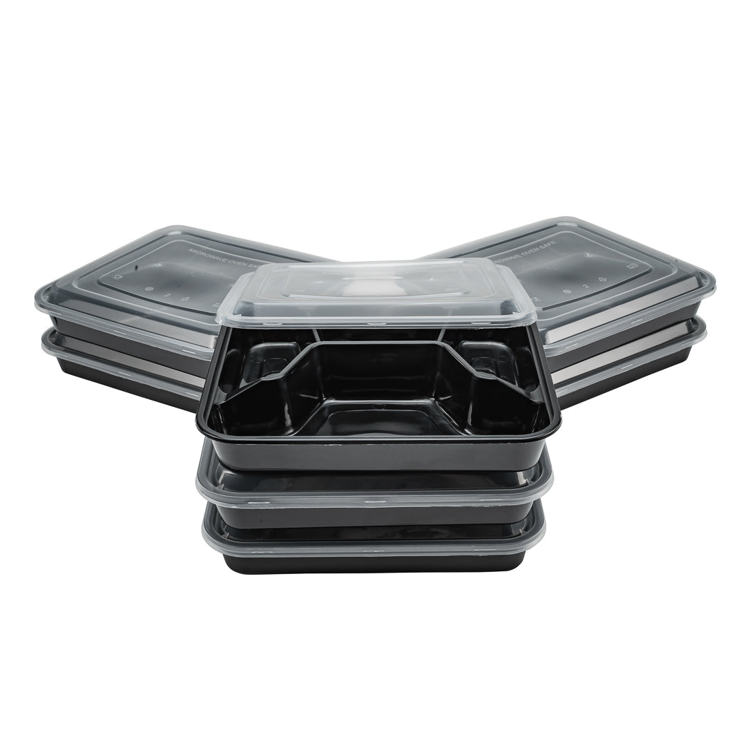 34 OZ PLASTIC 4 COMPARTMENT FOOD CONTAINER - WITH LID, MICROWAVABLE