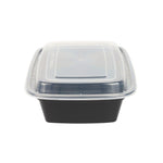 38 OZ RECTANGLE BLACK PLASTIC TO GO BOX - WITH CLEAR LID, MICROWAVABLE
