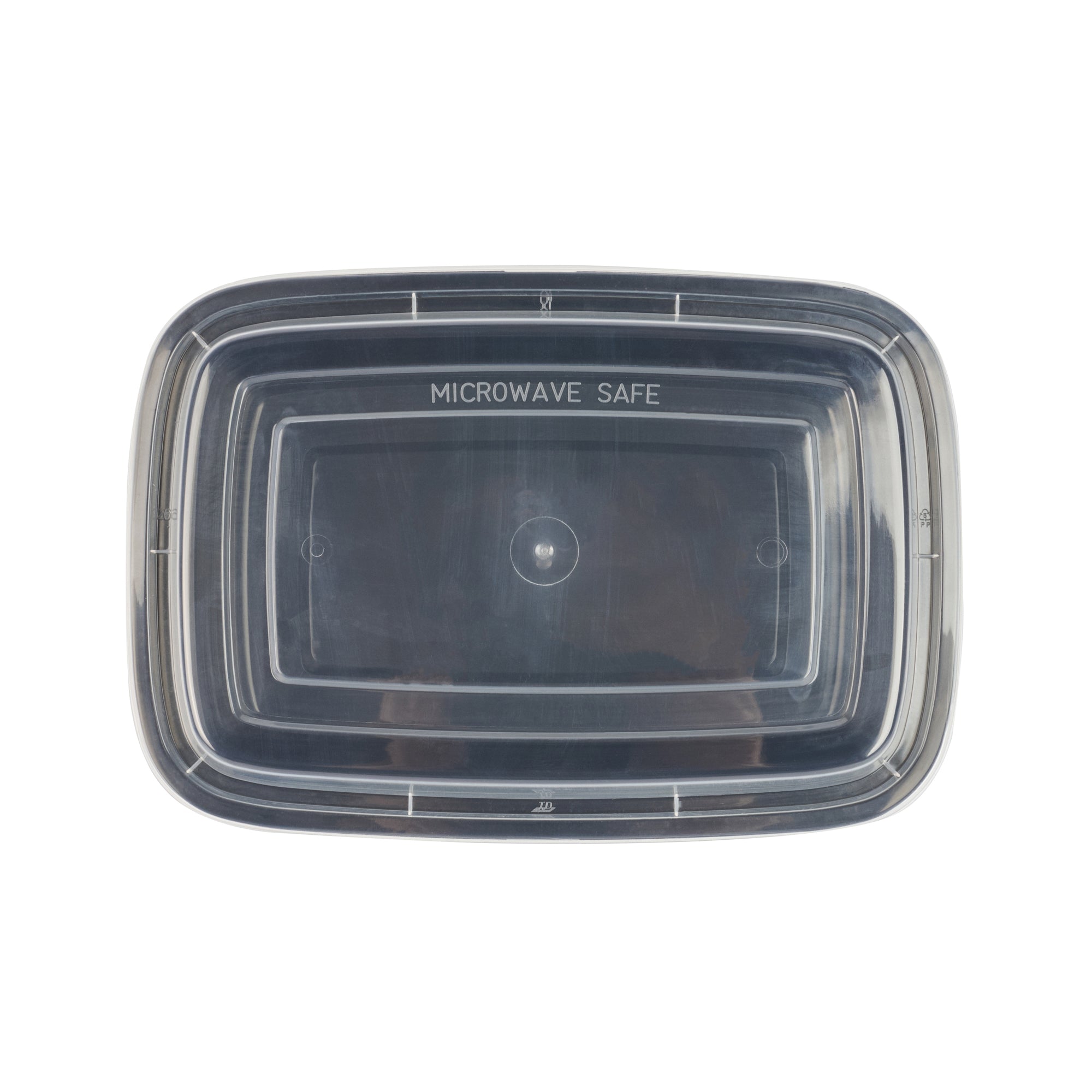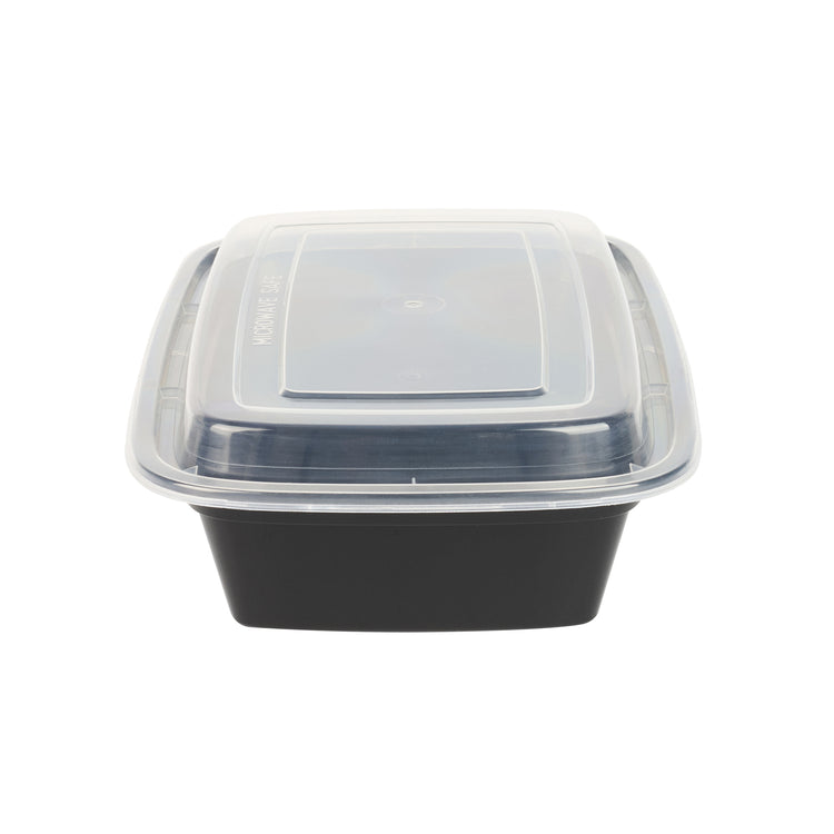38 OZ RECTANGLE BLACK PLASTIC TO GO BOX - WITH CLEAR LID, MICROWAVABLE