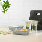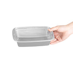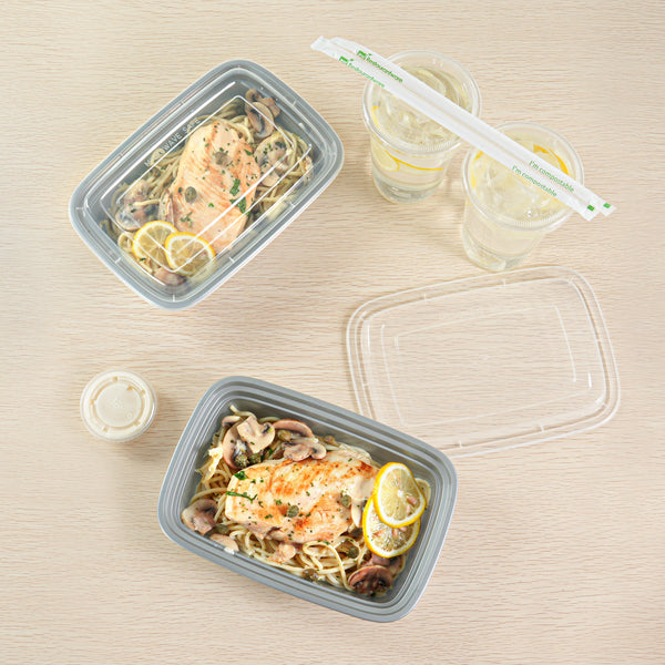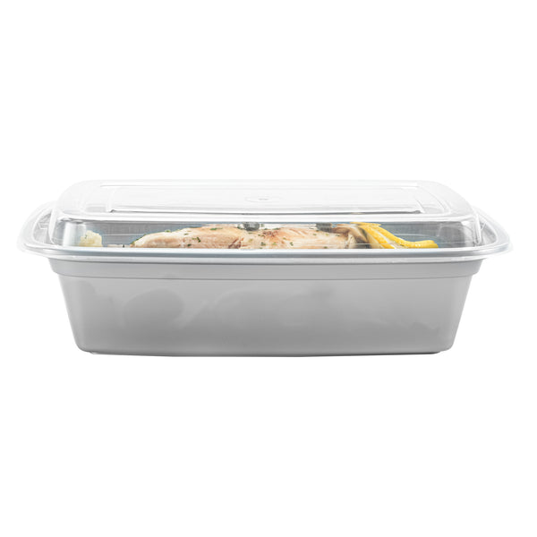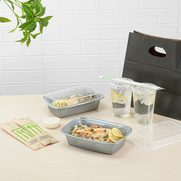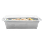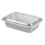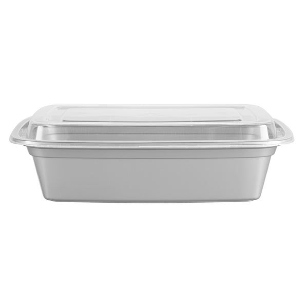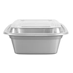 Elevate your food packaging with our Asporto 38-ounce Rectangle Silver Plastic To Go Boxes. The clear plastic lids of these take out containers form a tight seal and prevent spills in transit, ideal for keeping your food intact. These takeaway boxes are microwave-safe and allow you to reheat meals without the need to transfer them to a different container. Crafted from BPA-free plastic, these to go boxes are suitable for packing various hot and cold food items. These to go containers have a sleek silver finish that instantly elevates your food presentation. For an easy post-meal cleaning experience, these carry out containers can be easily discarded after use. These disposable take out containers are recyclable to help minimize your carbon footprint and are ideal for eco-friendly foodservice establishments. Measuring 8.75 inches in length by 6 inches in width by 2 inches in height, these meal prep containers can hold up to 38 ounces and are ideal for accommodating large meals. Sold in a 100 count box.