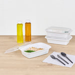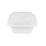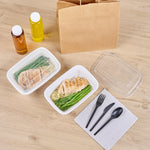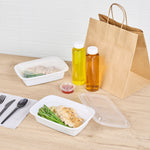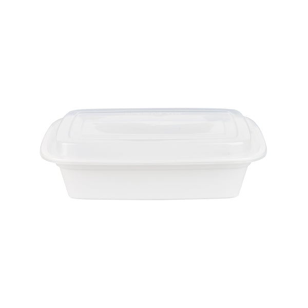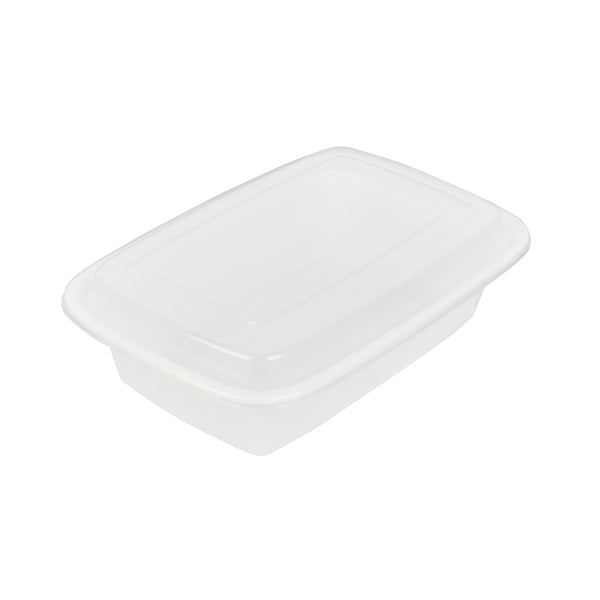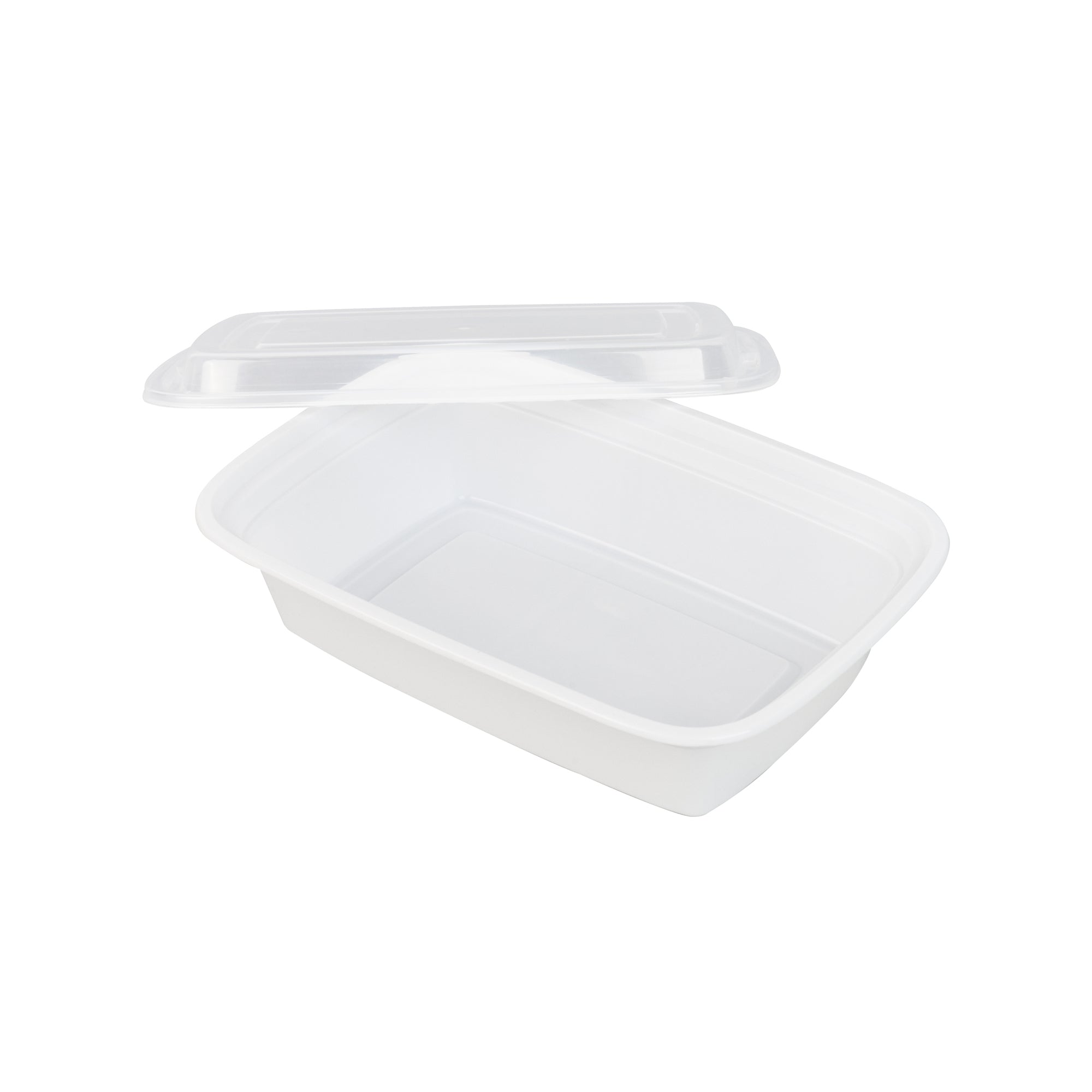 38 OZ RECTANGLE WHITE PLASTIC TO GO BOX - WITH CLEAR LID, MICROWAVABLE
