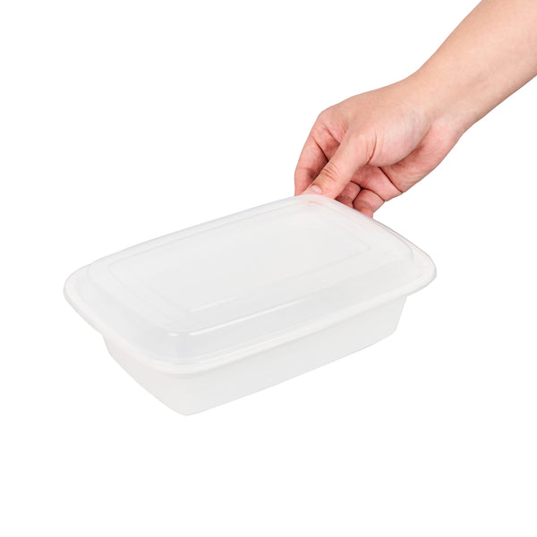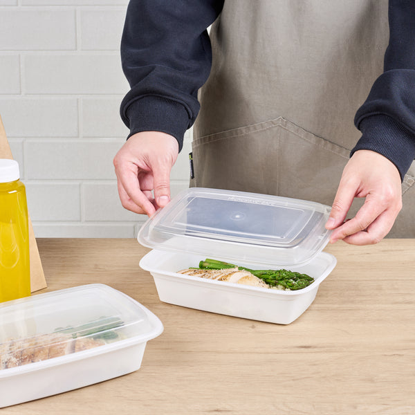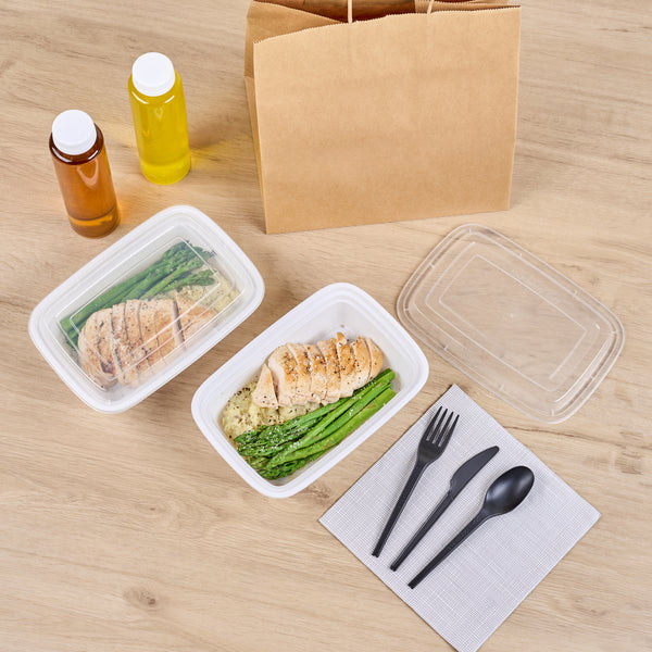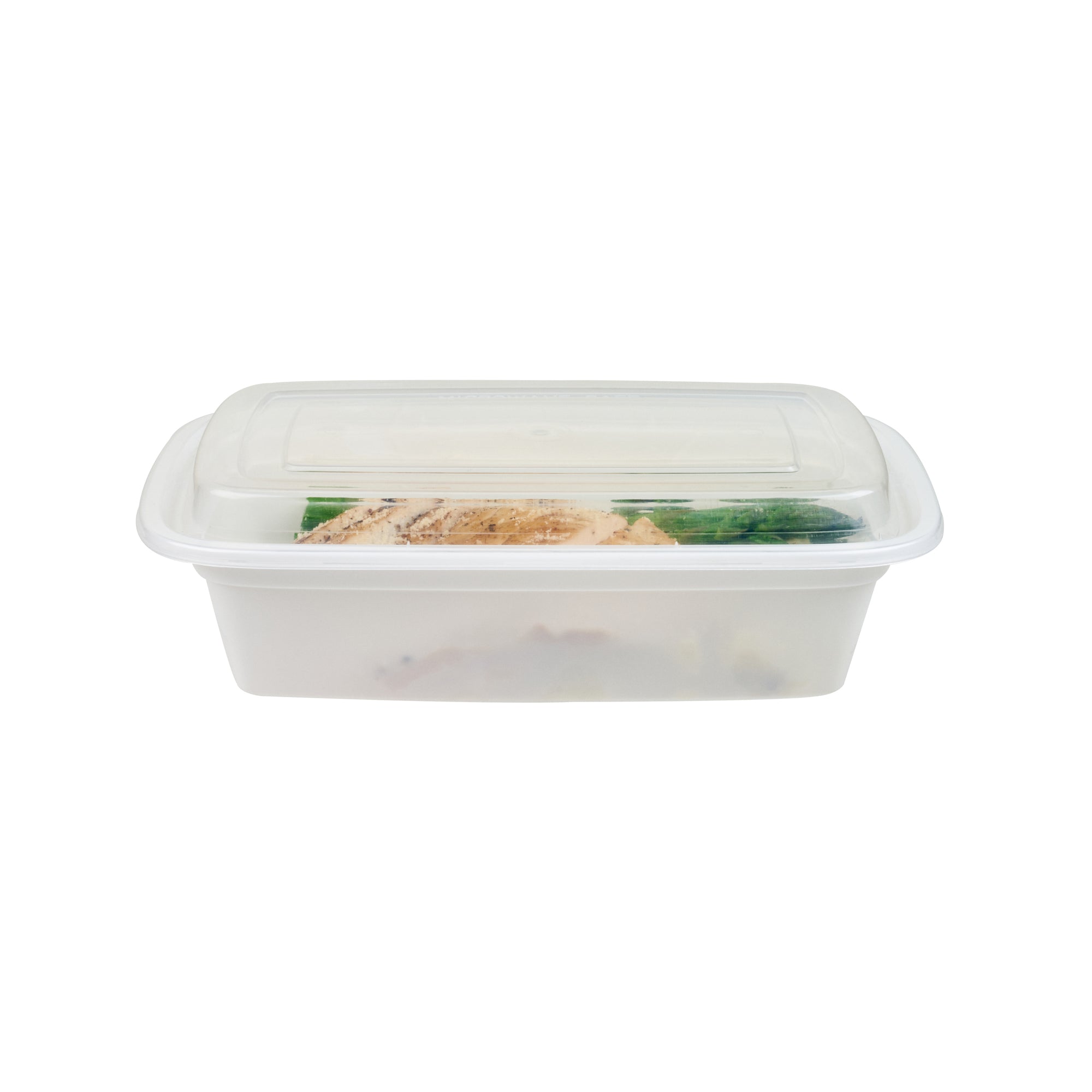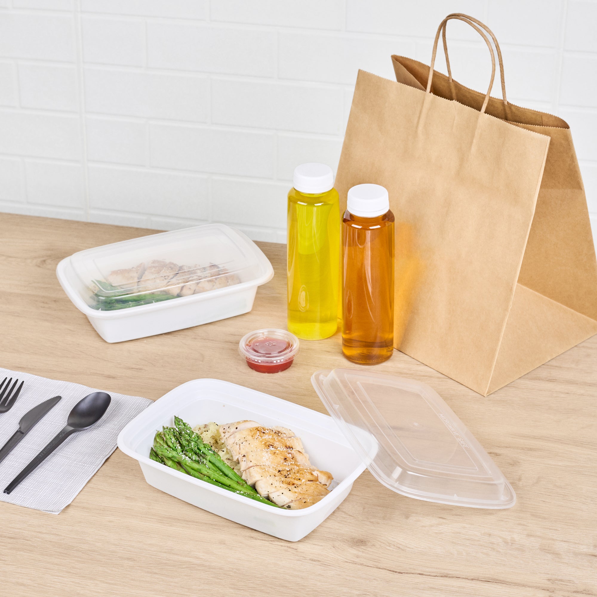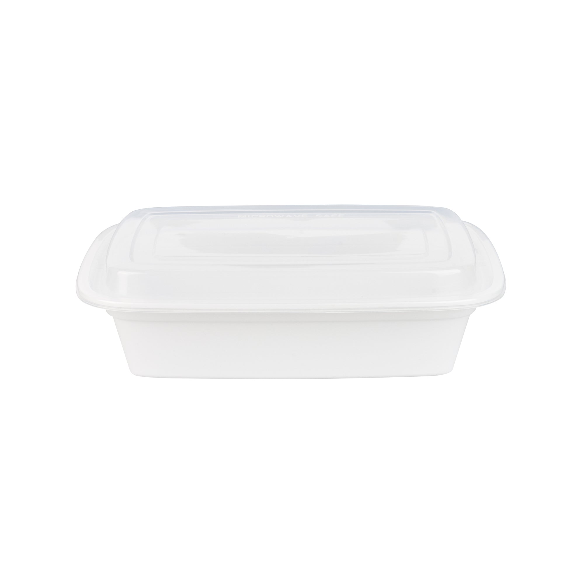 Conveniently package your customers' leftovers or stylishly serve your to go orders in our Asporto 38-ounce Rectangle White Plastic To Go Boxes. Made from high-quality, BPA-free polypropylene plastic, these disposable take out containers are grease-resistant, heat-resistant, and microwave-safe. Their durable plastic construction is built to expertly hold its shape in the microwave, while its strong and sturdy base supports hefty portions of your dishes. Built to be spill-resistant and mess-free, these plastic food containers with lids provide a reliable and portable food packaging solution for restaurants, food trucks, and other take out or delivery services. Each of these restaurant to go containers measures 8.75 inches in length by 6 inches in width by 2 inches in height, and can contain up to 38 ounces. Featuring a contemporary white finish, these recyclable plastic to go boxes are sure to bring a sophisticated and professional touch to your take out and delivery orders. Sold in a 50 count box.