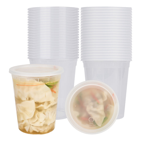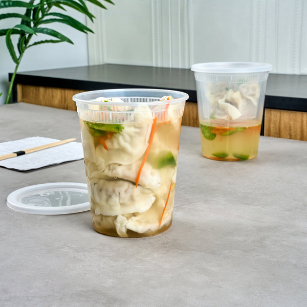 Preserve your leftovers in these clear plastic soup containers, designed for easy refrigeration. Their freezable design ensures your food stays fresh until you're ready to enjoy it again.
