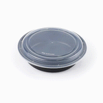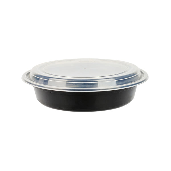 48 OZ ROUND BLACK PLASTIC TO GO BOX - WITH CLEAR LID, MICROWAVABLE