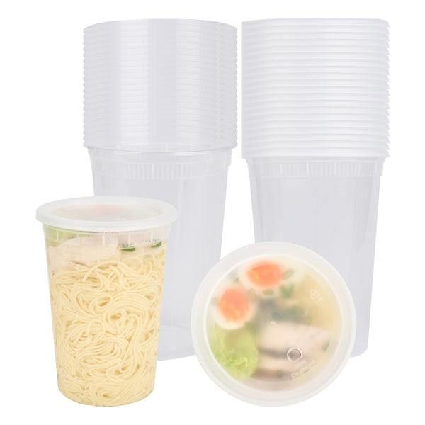 Preserve your leftovers in these clear plastic soup containers, designed for easy refrigeration. Their freezable design ensures your food stays fresh until you're ready to enjoy it again.