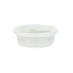 Package side dishes or snacks for take out and delivery services with our Asporto 8-ounce Round Clear Plastic Soup Containers. These transparent soup containers are created from BPA-free plastic and heat-resistant, so you can serve hot piping soups for to go orders. Each carry out container has a tight-fitting clear plastic lid that forms a secure seal for your hearty soups while preventing spills during delivery. These microwave-safe deli containers make them ideal for heating up meals without needing a different container. With a capacity of 8 ounces, these clear containers for take out provide spacious room to pack meals. These disposable food containers are recyclable to provide patrons with an ecologically responsible way to discard them after eating. With a clear finish, these round food containers showcases their contents without the need for unsealing them. Each disposable to go container measures 4.5 inches in diameter by 1.75 inches in height and has a capacity of 8 ounces. Sold in a 100 count box. NOTE: Lids are not for microwave use.