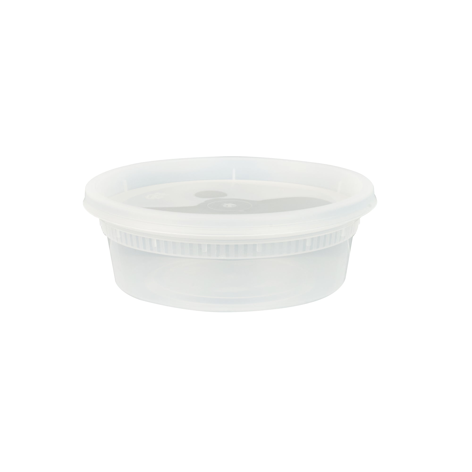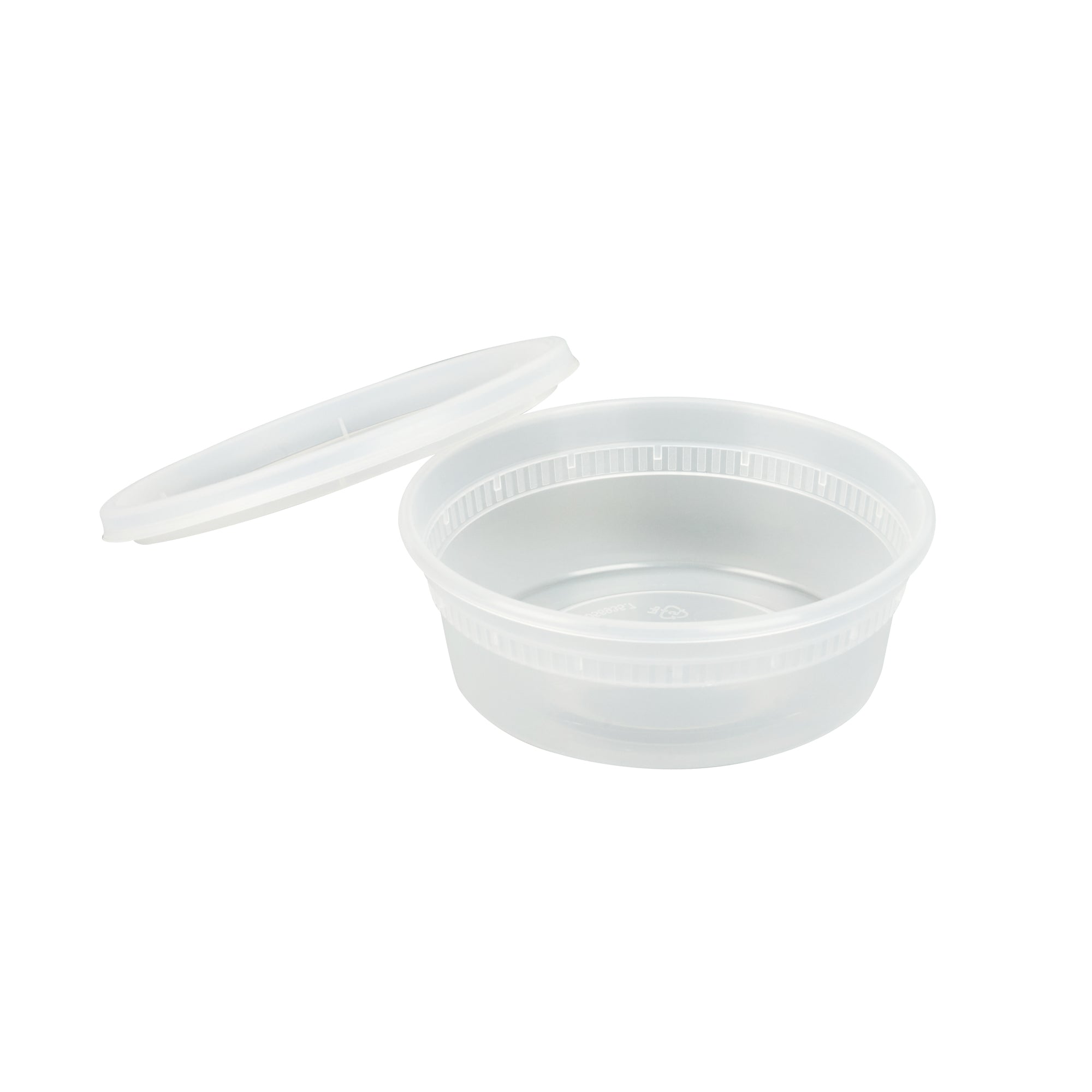 8 OZ ROUND CLEAR PLASTIC SOUP CONTAINER - WITH LID, MICROWAVABLE