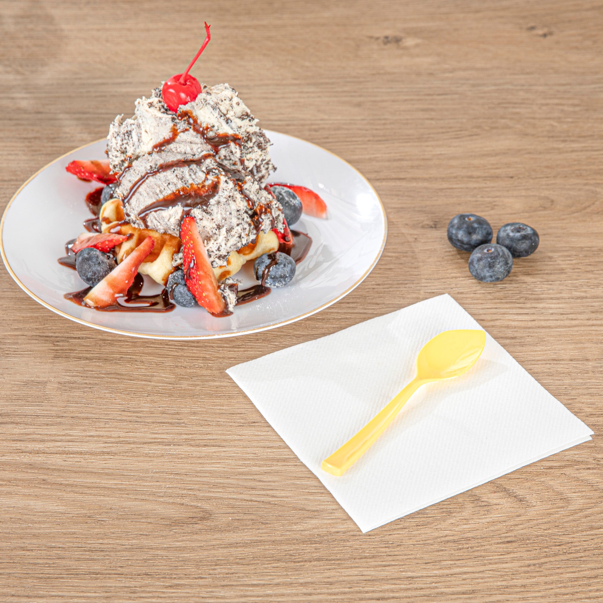 • Baby yellow finish instantly elevates the look of your dessert presentation