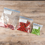 The interlocking double zipper of these zipper bags for food creates a tight seal to keep air out, locking in the freshness of foods. Freezable design!