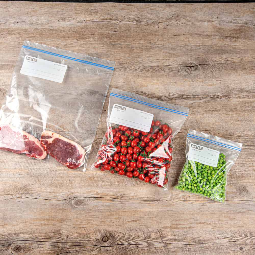 These bags with double zippers are greaseproof to let you store oily, saucy, hot, and cold foods without messes. Conveniently greaseproof!