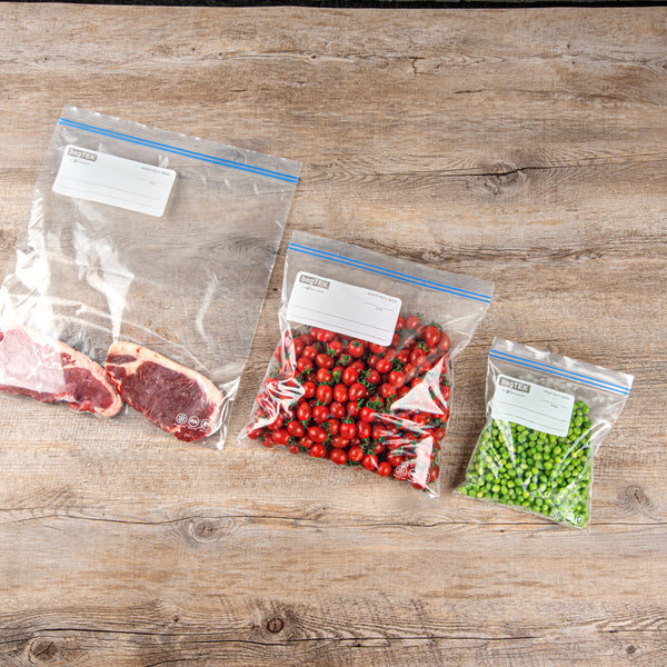 These freezer zip bags come in 1-quart, 1-gallon, and 2-gallon capacities to store various food items. A size for your every need!