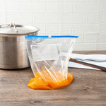 The sliding lock of these freezer slider bags creates a tight seal to keep air out, locking in the freshness of foods. Freezable design!