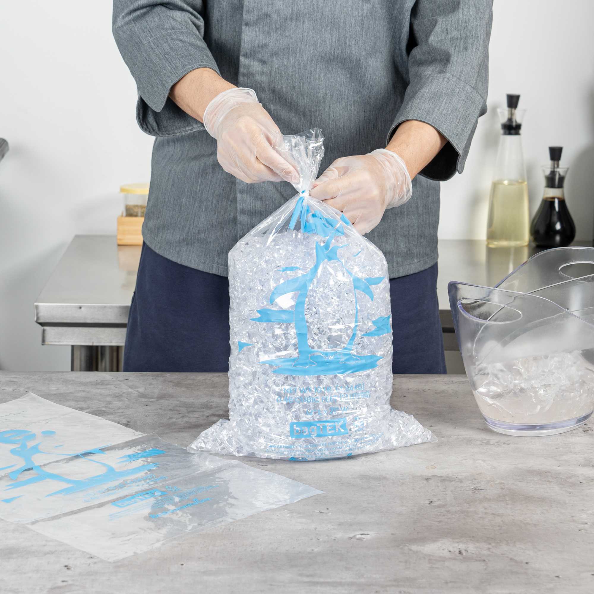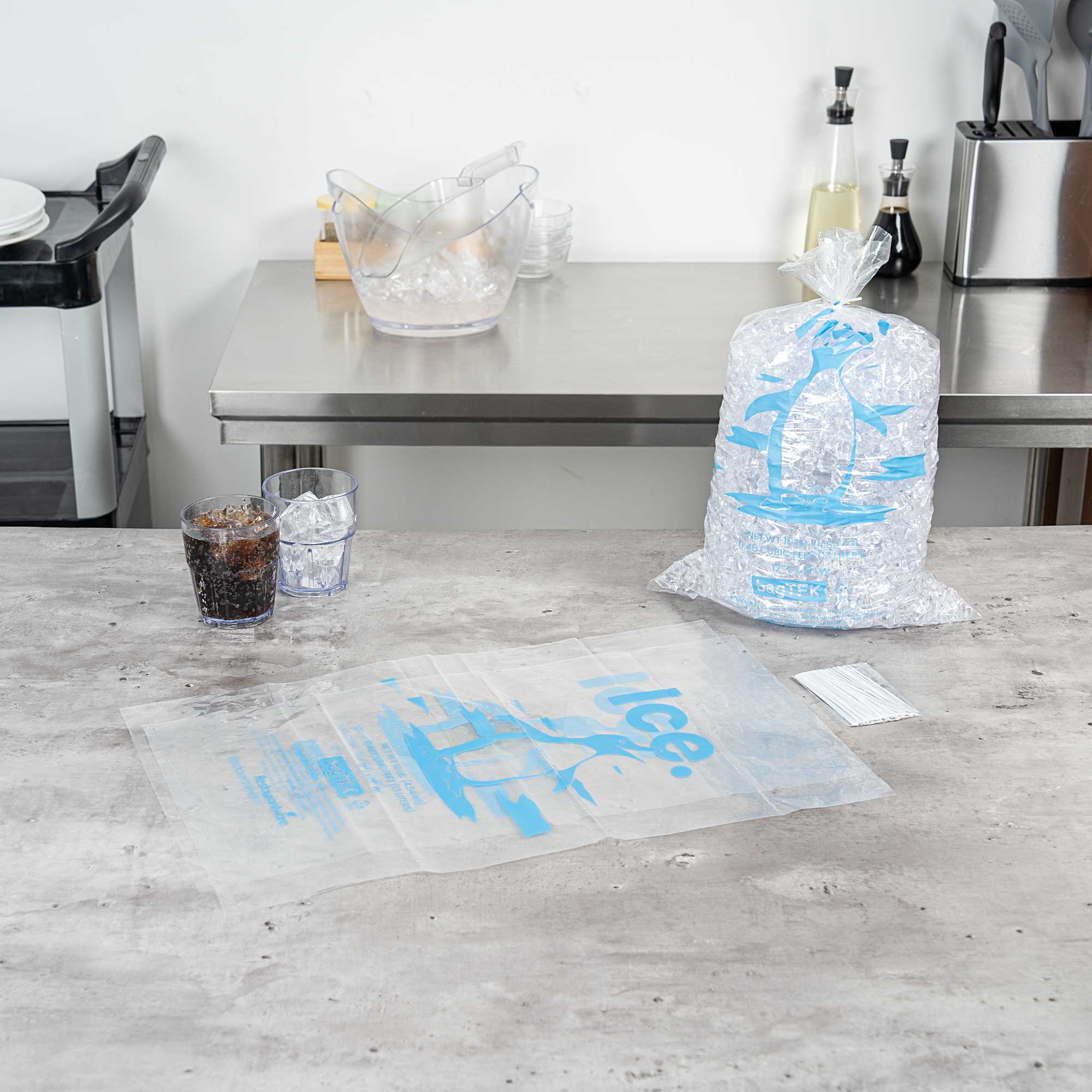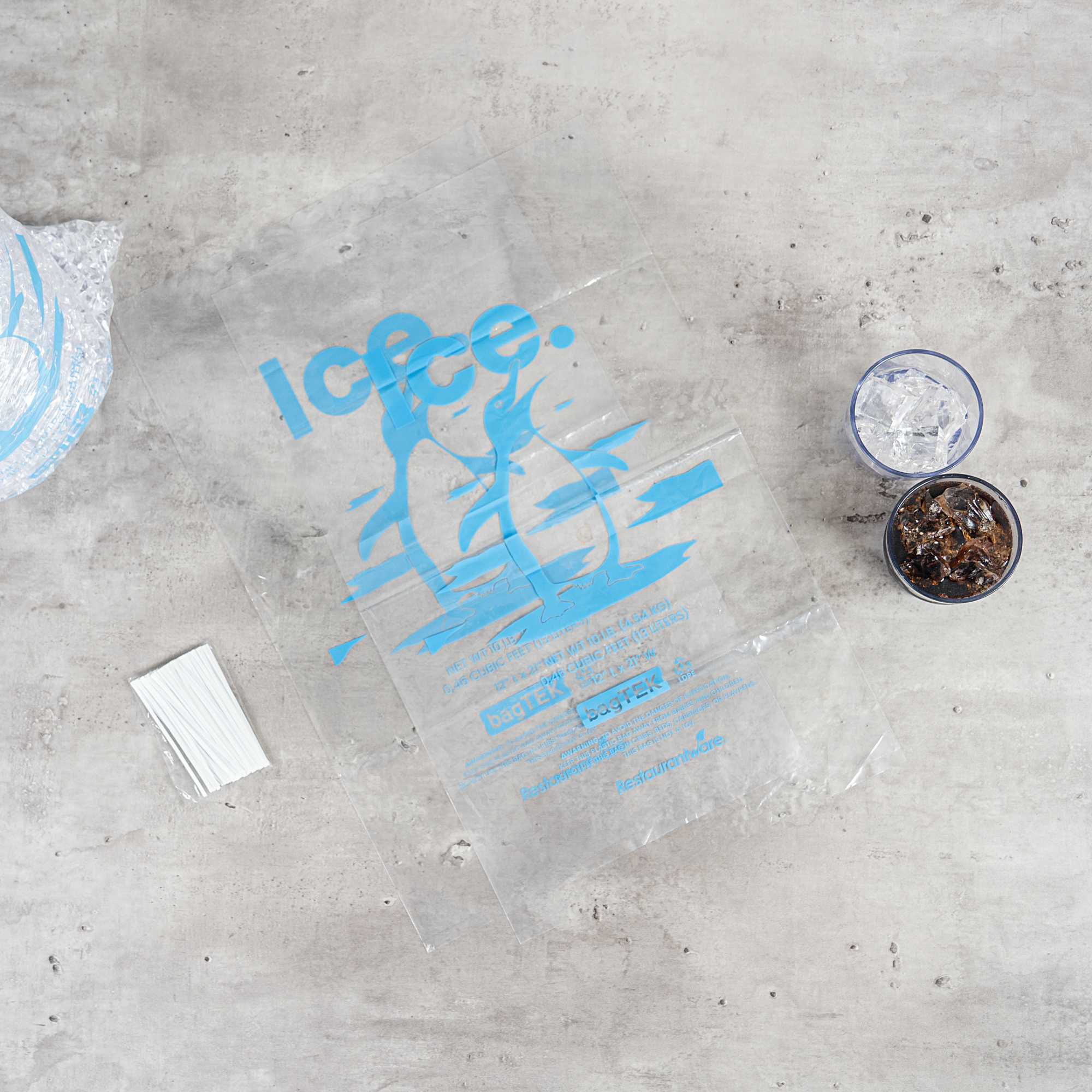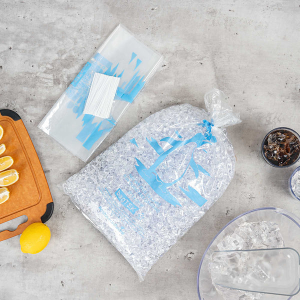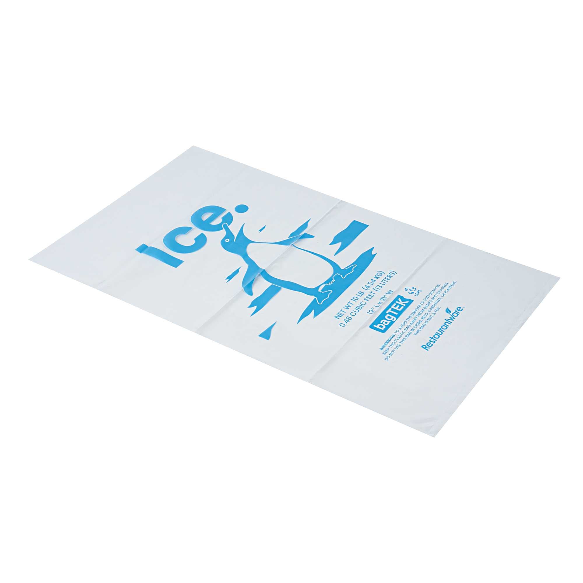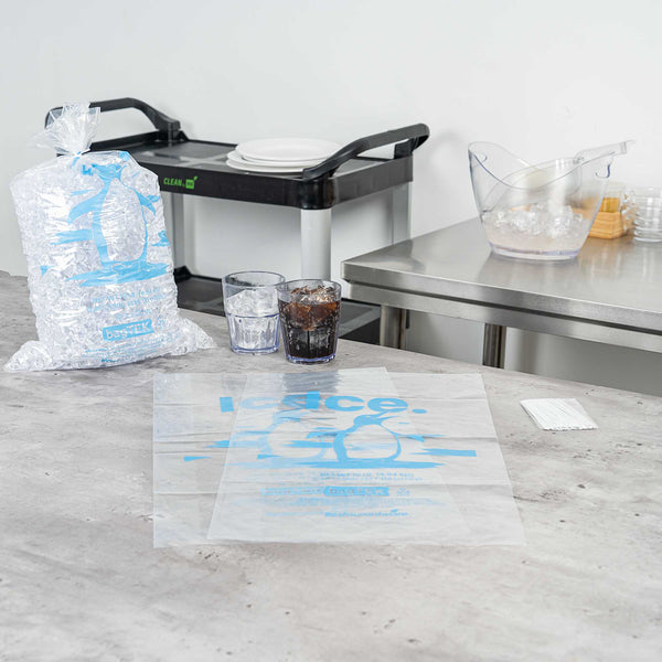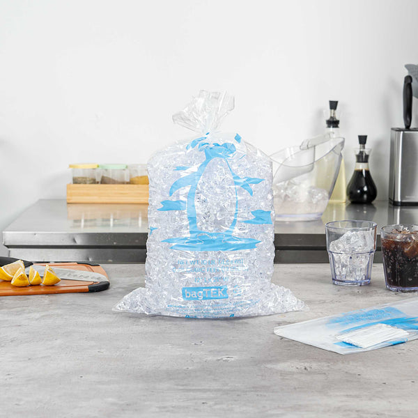 Ensure secure and efficient ice handling with our Bag Tek Clear Plastic Ice Bags. With a 10-pound capacity, these bags are ideal for convenience stores, foodservice operations, and ice vendors seeking a dependable storage solution. Engineered to be freezer-safe, they help maintain ice integrity during transport and storage. Made from durable plastic enhanced with metallocene, they resist leaks and tearing to keep ice clean and contained. The bold ice print and transparent design provide easy identification and a professional presentation. Each bag measures 12.01 inches in length by 21.06 inches in width, perfectly sized for 10-pound portions of ice. Sold in a 1000 count box.