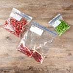 The interlocking double zipper of these zipper bags for food creates a tight seal to keep air out, locking in the freshness of foods. Freezable design!