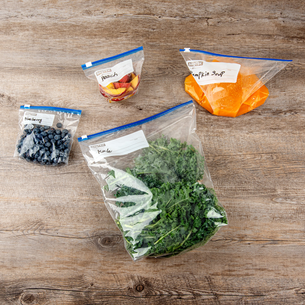 These freezer zip bags come in 1-pint, 1-quart, 1-gallon, and 2-gallon capacities to store various food items. A size for your every need!