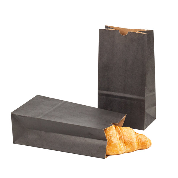 Pack up to-go orders for customers using our Bag Tek Black Paper Bags. These paper bags are equipped to hold up to 4 pounds of your desired food items. These paper lunch bags have an open-top design that helps streamline your packaging process and offers guests easy access to their meals. Made from premium paper, these black bags are recyclable for a nature-friendly way to clean up after use. These paper bags can be conveniently folded down to seal orders and allow customers to take their meals on the go. With a flat bottom, these black paper bags provide stability on tabletop surfaces to avoid messes. The modern black finish of these paper lunch bags instantly upgrades your take out presentations. These paper bags measure 5 inches in length by 3.25 inches in width and 9.5 inches in height. Shipped in a 100 count box.