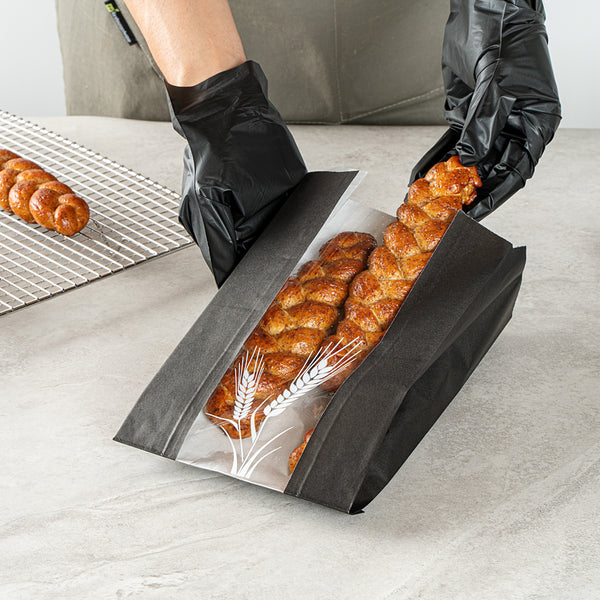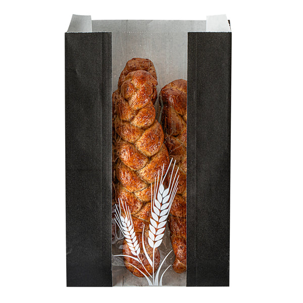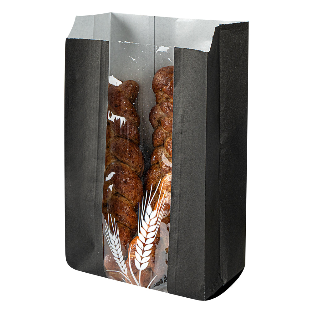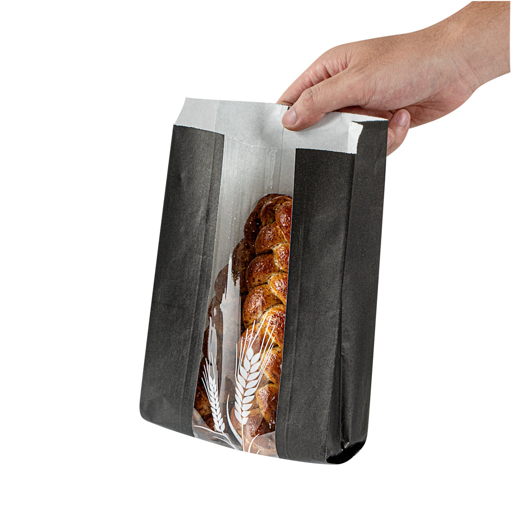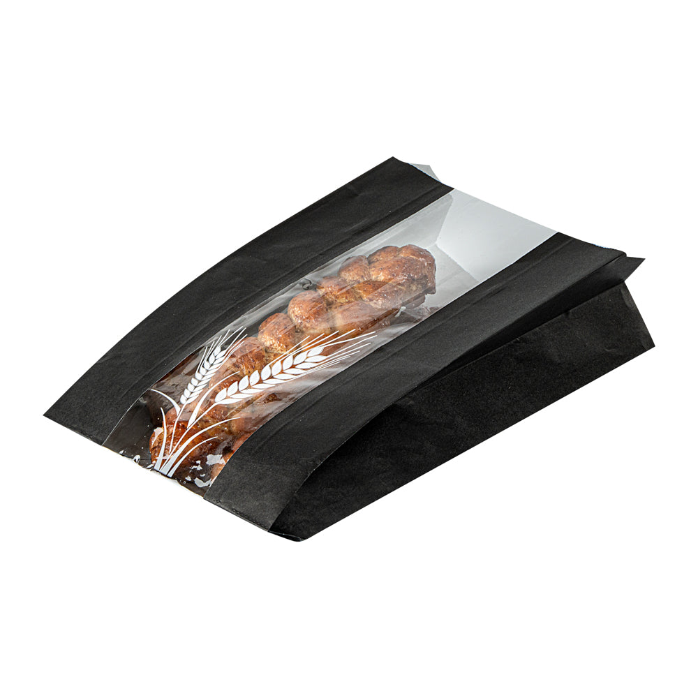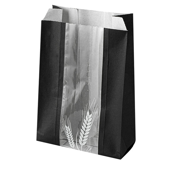 BLACK PAPER BREAD BAG - MICRO-PERFORATED, GREASEPROOF, WHEAT PATTERN