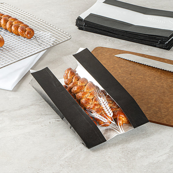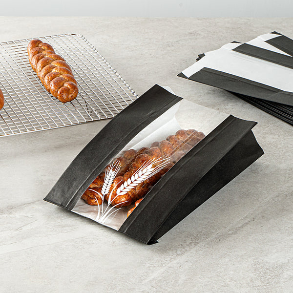 These paper bread bags include a micro-perforated plastic window, ensuring optimal airflow to keep your fresh-baked bread crisp and flavorful. The clear window lets customers get a sneak peek of the contents!