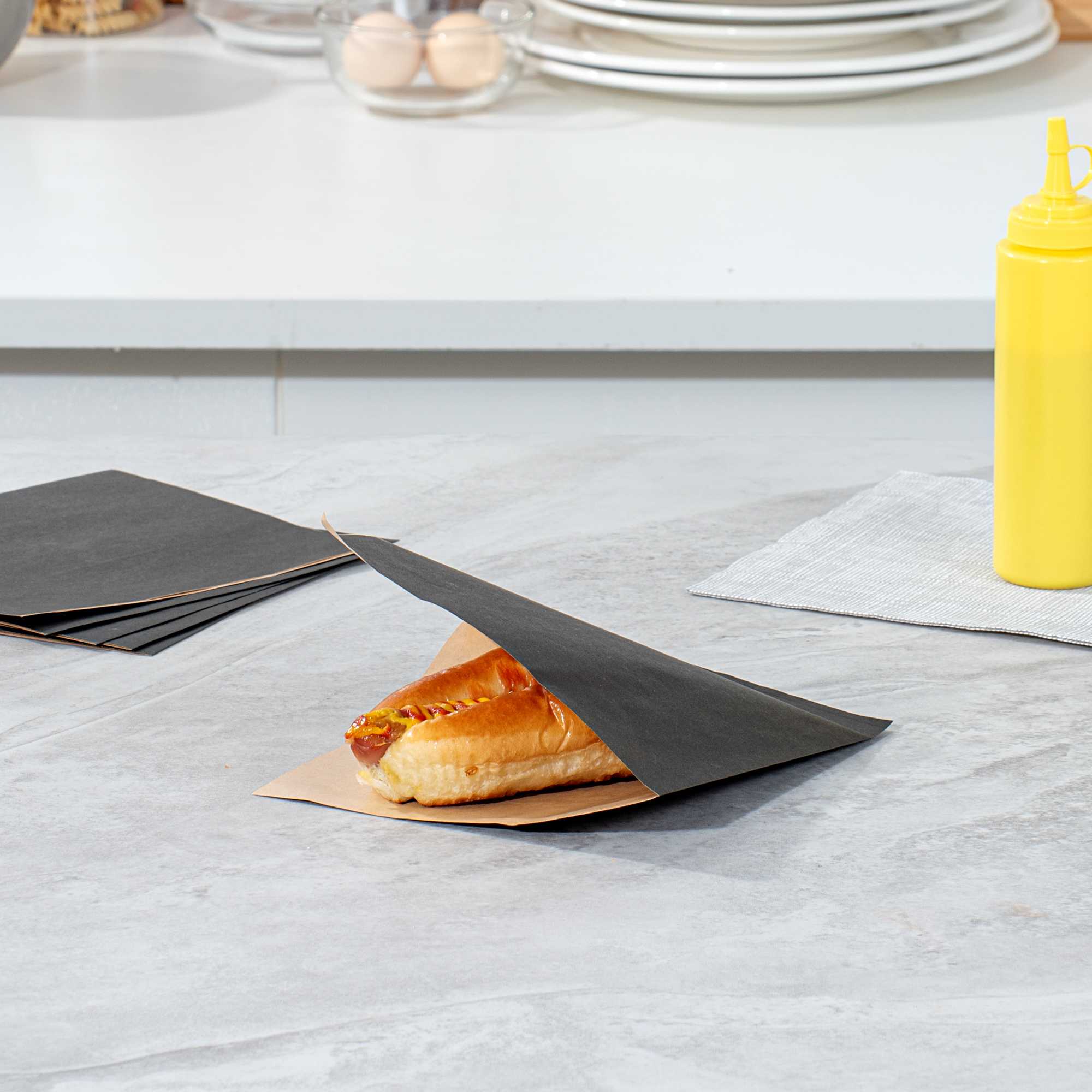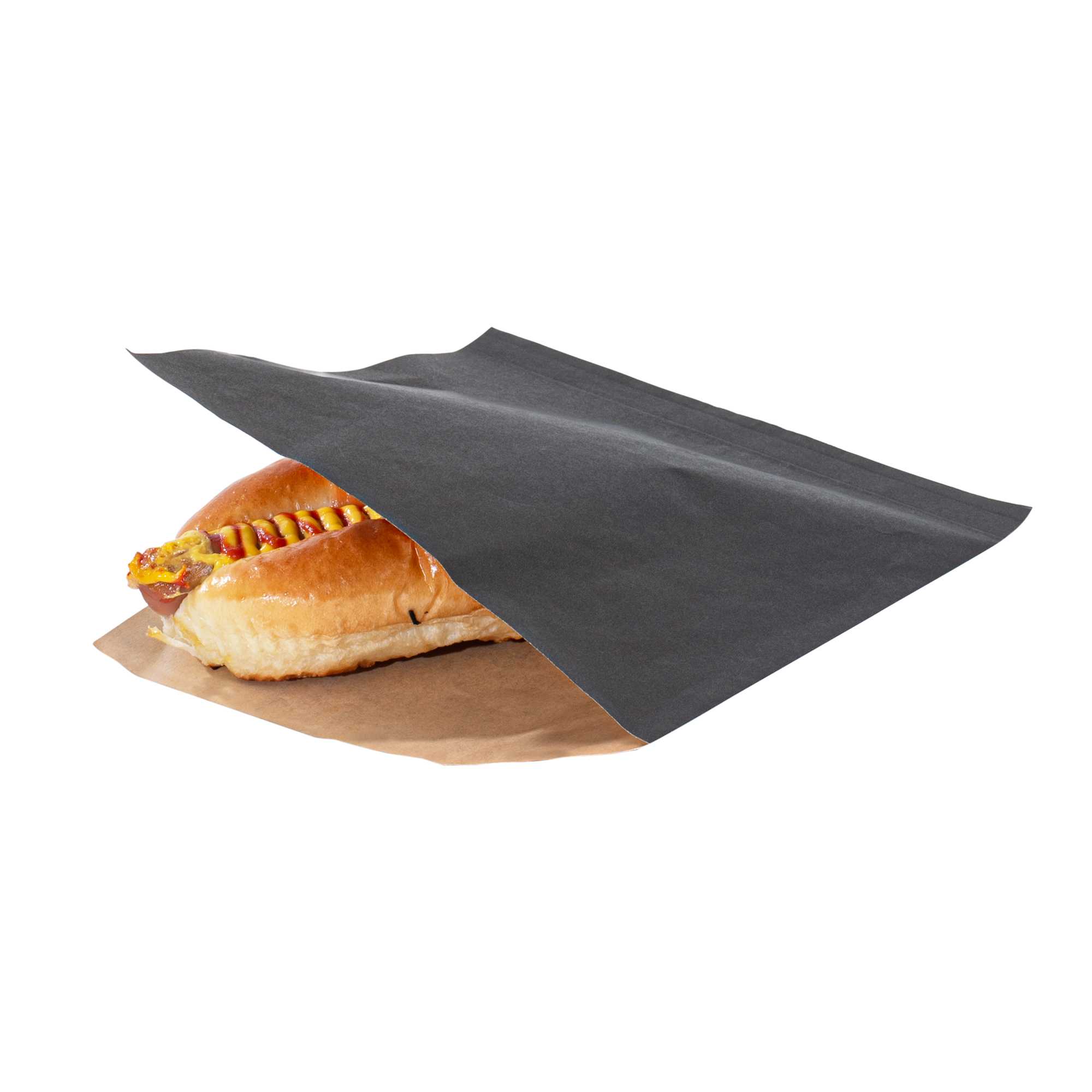 BLACK PAPER MEDIUM DOUBLE OPEN BAG - GREASEPROOF
