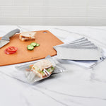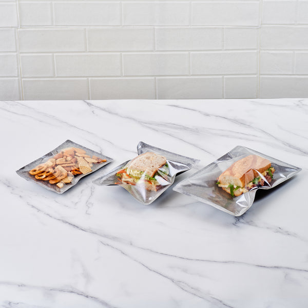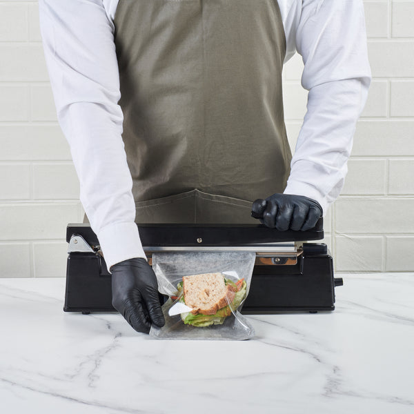 Preserve the freshness of your takeaway orders with our Bag Tek Black Plastic Medium Sandwich and Snack Bags. The heat sealable feature helps the bags to be airtight to preserve the freshness and aroma of the packed orders. Made with sturdy and durable plastic material, these snack bags do not let humidity affect the texture of the foods. Ideal for commercial kitchens, events, celebrations, or home kitchens, these sandwich bags are greaseproof and do not let oils seep through, avoiding messes. These plastic snack storage bags have a clear window that allows you to see what's inside without touching the snacks. With a plain white finish, these bakery bags enable customization according to the theme of the event. The bakery pouches for cookies are disposable, allowing an easy cleaning process. Each medium bakery bag measures 8.75 inches in length by 6.5 inches in width. Sold in a 100 count box.