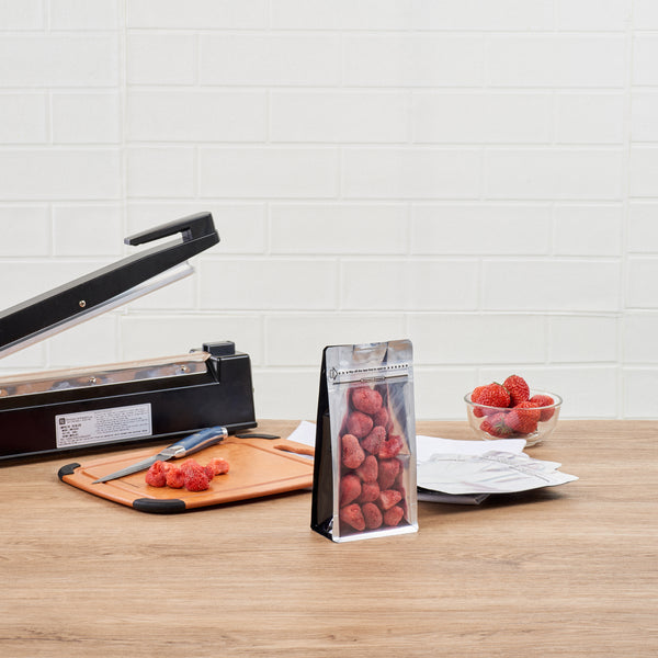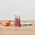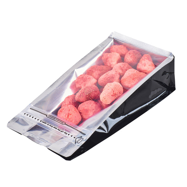 Make packaging efficient and easy using our Bag Tek Black Plastic Small Snack Bags. These plastic bakery pouches preserve the freshness of snacks with their double sealing feature. The rip lock enables resealing of the package after tearing off the heat seal, making the foods accessible without losing the crispness. Featuring a flat bottom design, these heat-seal bags can stand without any support, making them ideal for kiosks, food stalls, or food displays at grab-and-go sections of restaurants. With a greaseproof feature, these plastic pouches also keep the oils and grease locked in without letting them seep out. These plastic bakery bags have gussets on the sides that allow them to hold a generous capacity of sweet and savory snacks like granola, salted peanuts, chocolates, or candies. With a bold black finish, each black zip lock bag measures 8 inches in length by 4 inches in width by 2.5 inches in height. Sold in a 100 count box.