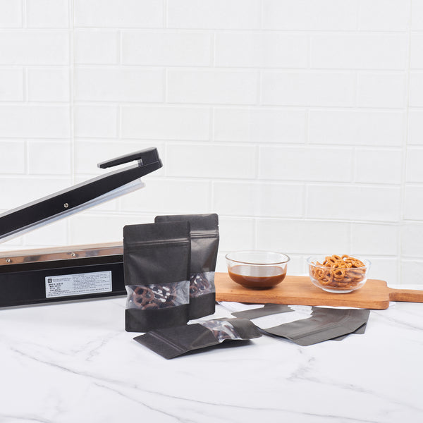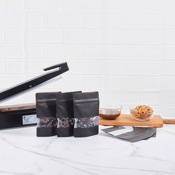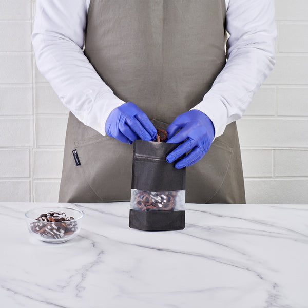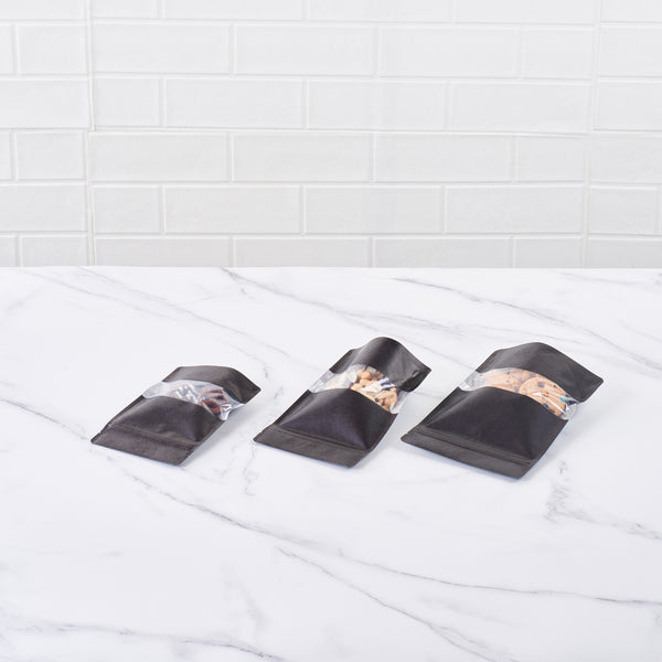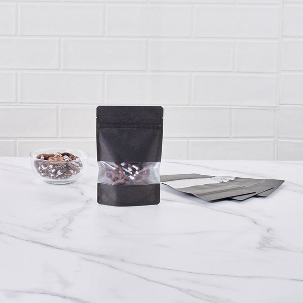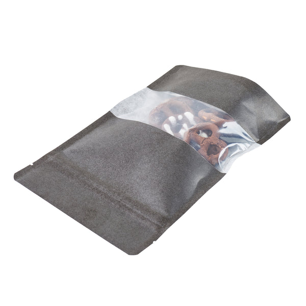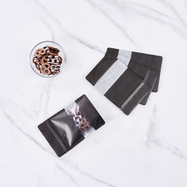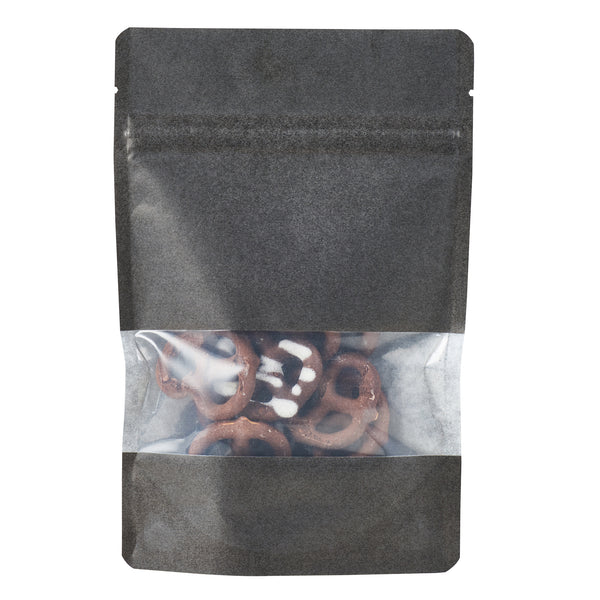 Elegantly package your confectionary in our Bag Tek Rectangle Black Plastic Small Window Bags. Perfect for colorful gumdrops or gummy bears, these dessert bags are heat sealable to keep your treats from spilling and creating a mess. Featuring a crystal-clear window, these heat seal bags showcase your delicious snacks to attract the attention of your customers. The stylish black finish of these party treat bags adds a chic look to your candy presentations. Crafted from premium plastic, these candy buffet bags are recyclable for quick cleanup at your bakery, deli, or restaurant. Plus, they're tear-resistant to efficiently protect fare from dust and debris. These empty plastic bags measure 7 inches long by 4.75 inches wide by 1.5 inches tall. Use our impulse sealer (SKU: RWT0243 or RWT0244) to lock in freshness. Sold in a 100 count box.