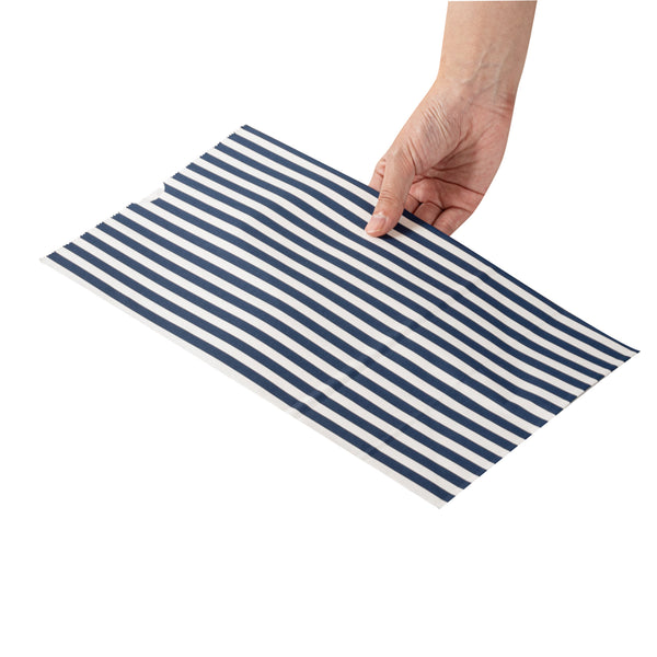 Effortlessly package orders using our Bag Tek Blue and White Stripe Paper Bags. With a 12-pound capacity, these take out bags are perfect for family-sized meals and groceries. Made from premium paper, these merchandise bags are sturdy with a grease-resistant coating to prevent oil or sauce from seeping through and making a mess. The stylish blue and white stripes of these paper deli bags seamlessly match your restaurant's take out supplies. To easily store your leftovers, these disposable paper bags are freezer-safe. These disposable lunch bags have an open-top design that enables quick packaging, while the fold-down feature holds meals securely and maintains a tidy carry-out experience. For quick cleanup, these paper grocery bags are disposable. The flat bottom design of these striped paper bags ensures stability and self-standing support on surfaces. Each disposable grocery bag has a capacity of 12 pounds and measures 7 inches in length by 4.25 inches in width by 12.5 inches in height. Shipped in a 100 count box.