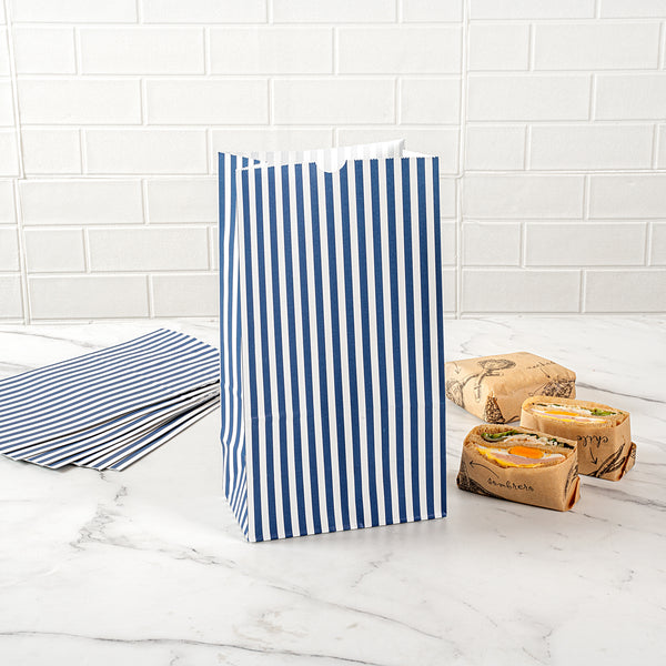 BLUE AND WHITE STRIPE PAPER BAG - 12 LB