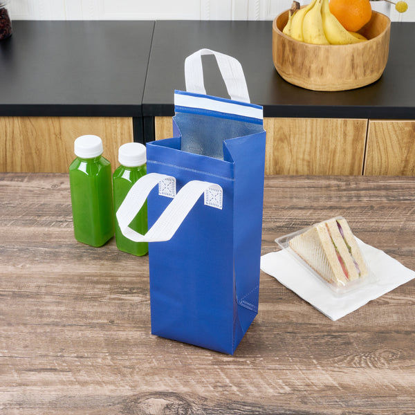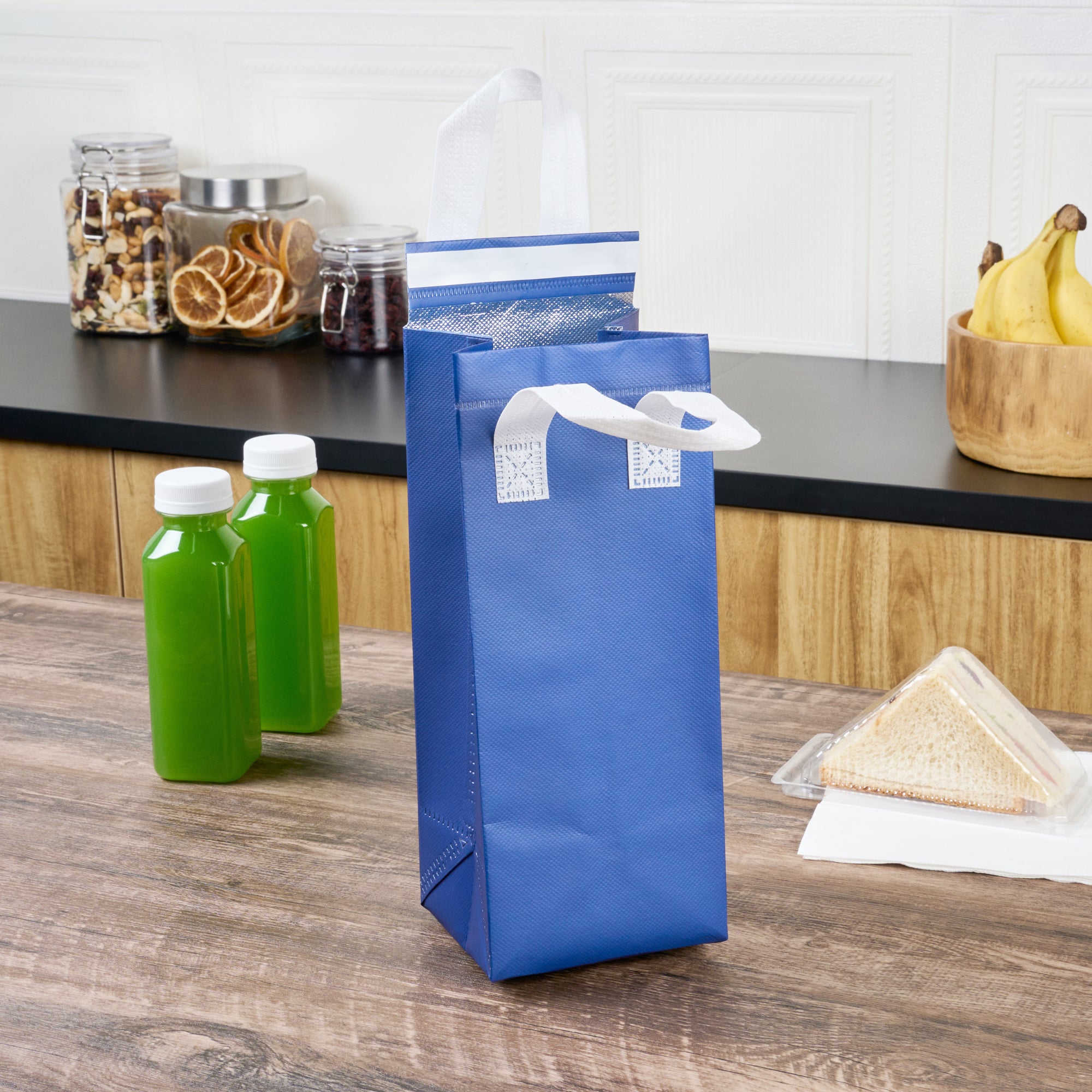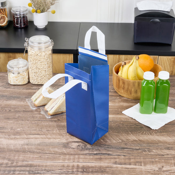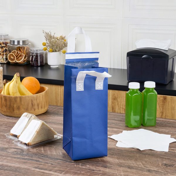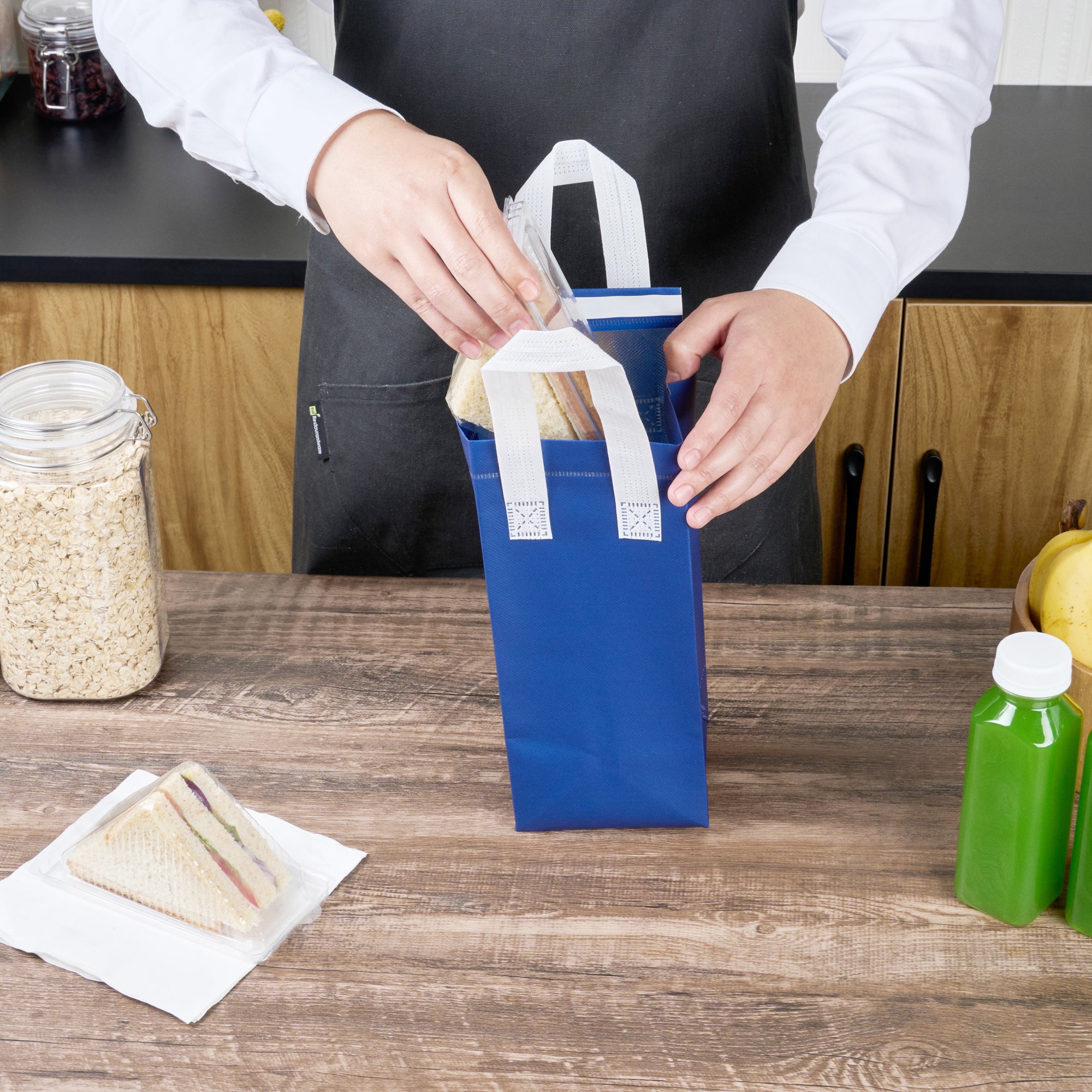 Ensure optimal food temperature and delivery security. Bag Tek Blue Nonwoven Thermal Delivery Bags utilize advanced insulation technology to maintain the ideal temperature of hot and cold foods, enhancing customer satisfaction in thermal delivery bags. Designed with a tamper-evident closure, these bags provide peace of mind by clearly indicating any unauthorized access, making them indispensable for insulated grocery bags. With compact dimensions of 4.75 inches by 4 inches by 11 inches, these bags efficiently accommodate small to medium-sized takeout items, optimizing space and minimizing waste for hot food delivery bags. Crafted from durable nonwoven material, these bags are sturdy yet lightweight, ensuring easy handling and stability with their robust handles during transport. Elevate your foodservice operations with these reliable takeout solutions, designed to uphold food integrity and safety. Each order includes 25 Bag Tek Blue Nonwoven Thermal Delivery Bags.