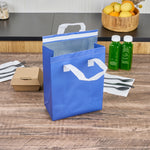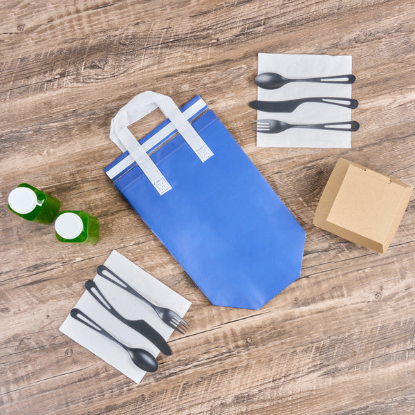 Ensure food safety on every delivery with our tamper-evident design. The Bag Tek Insulated Cooler Bag features advanced insulation technology, maintaining hot or cold temperatures to preserve food quality during transport. This insulated cooler bag is crafted from durable nonwoven material, combining strength and reusability for long-lasting performance. Its spacious design easily accommodates multiple items, making it an ideal thermal delivery bag for efficient meal transport. The sturdy handles provide stability and easy carrying for foodservice staff, enhancing operational convenience. With compact dimensions of 8.3 inches by 4.3 inches by 10.6 inches, this food transport bag minimizes excess space and prevents food movement, ensuring meals arrive in perfect condition. Leverage the professional appeal of the vibrant blue color to enhance your brand's visibility. Each order includes 100 Bag Tek Insulated Cooler Bags.
