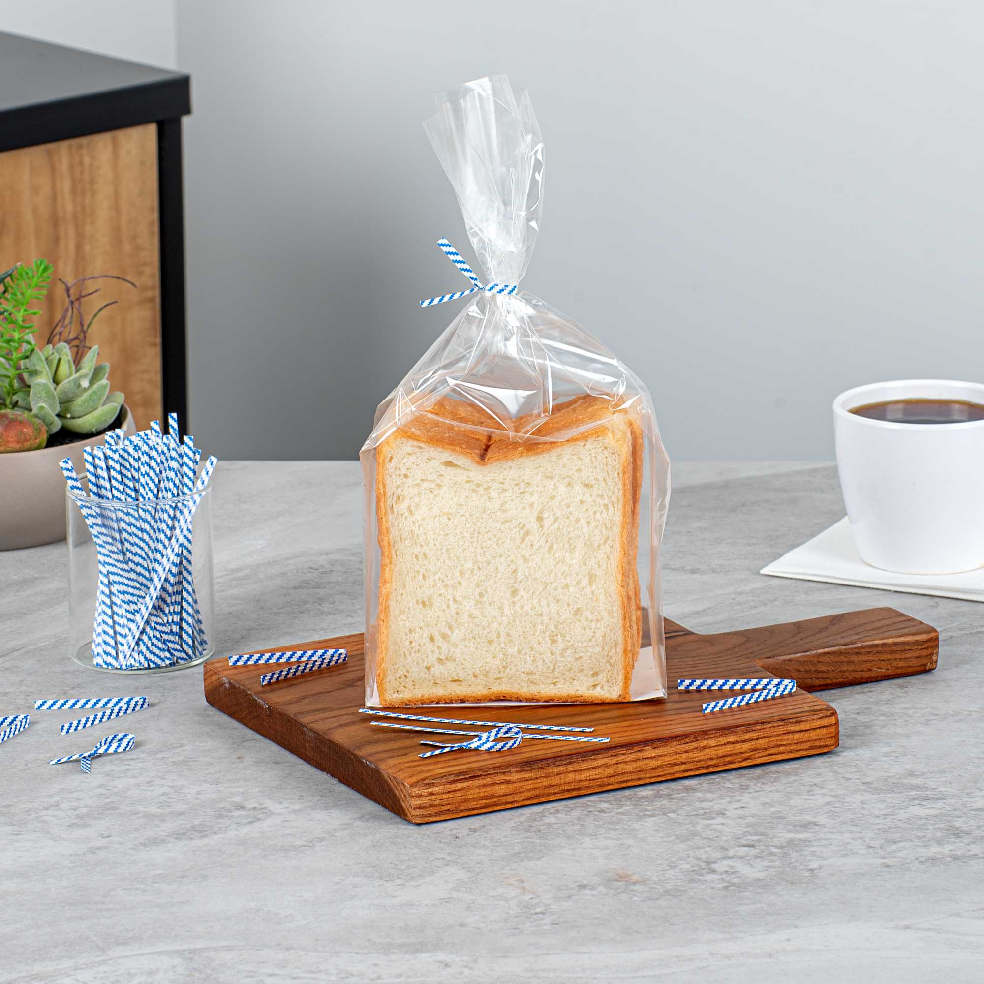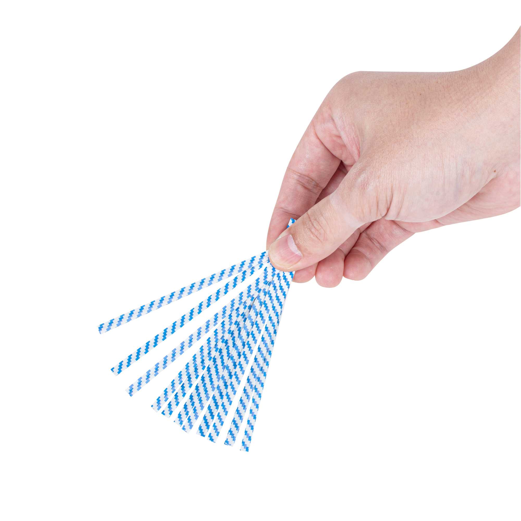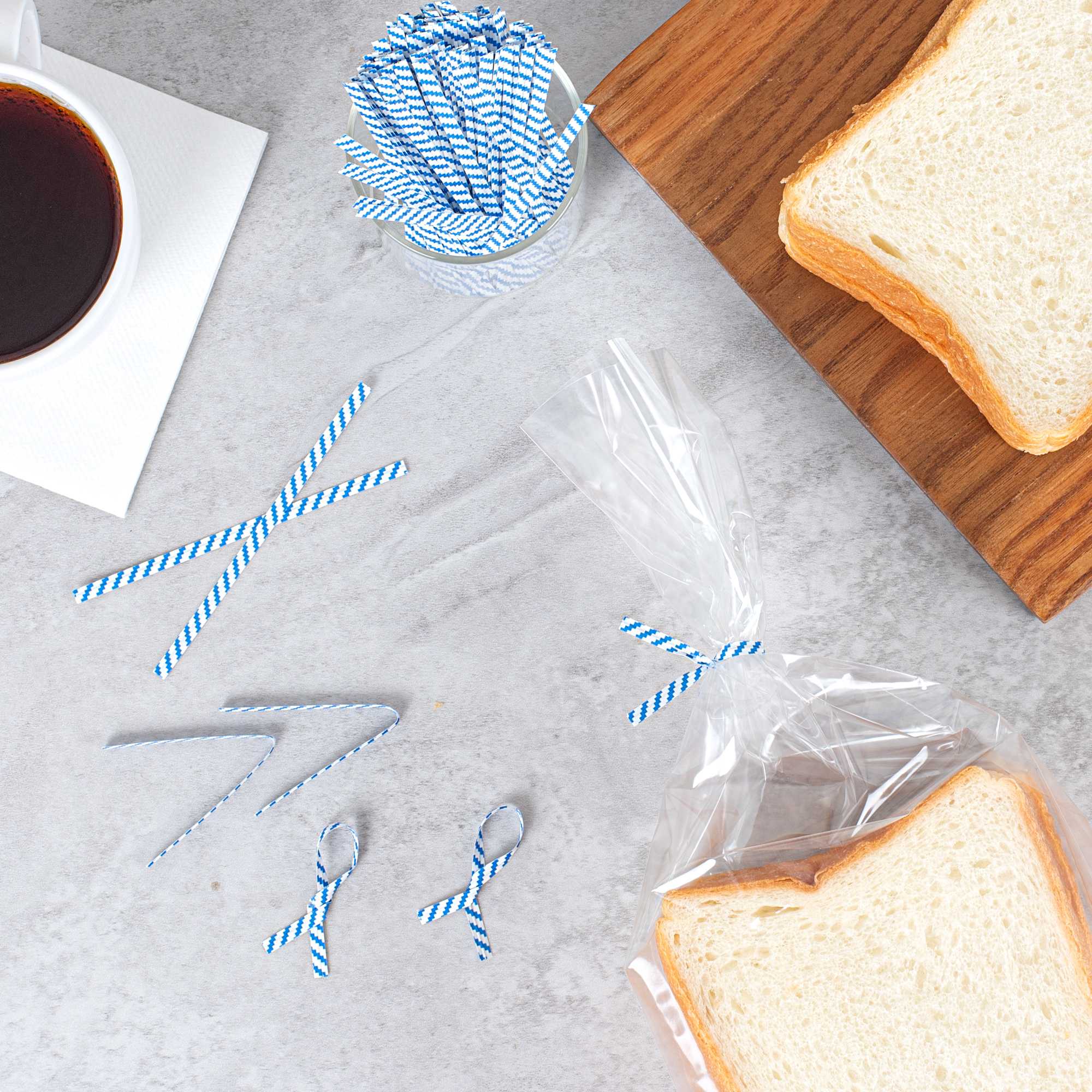 Secure and enhance the presentation of your baked goods with our Bag Tek Blue Stripe Paper Twist Ties / Bag Ties. Featuring a laminated blue stripe design and flush-cut edges, these twist ties offer a clean, professional look for sealing all types of packaging. An internal iron wire core ensures a tight, secure hold that keeps items fresh and protected. The bold blue striping adds a visual accent and identification that pairs well with a variety of bakery and retail packaging themes. Ideal for breads, pastries, candies, gifts, and more, these 4-inch twist ties combine functionality and visual appeal. Sold in a 500 count box.