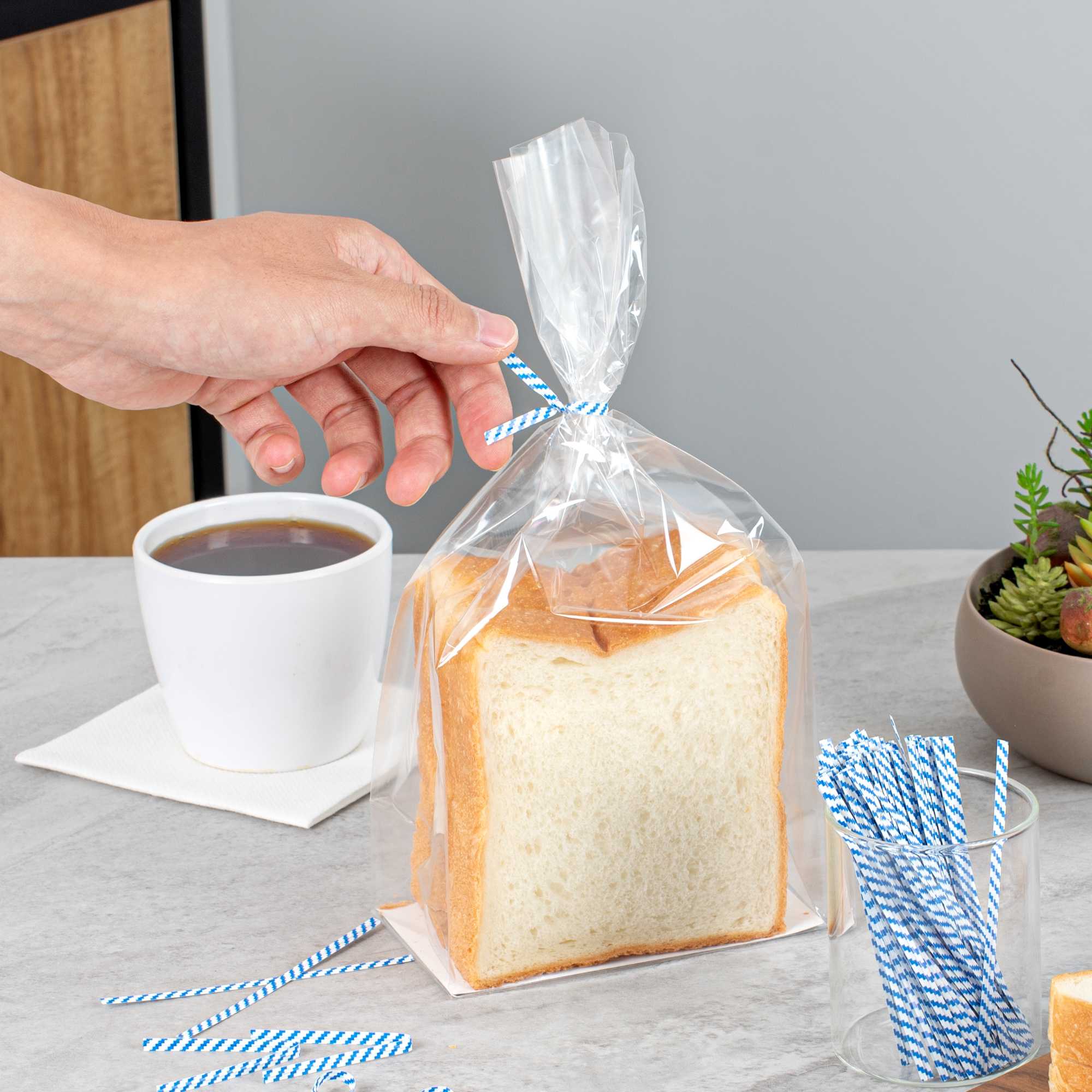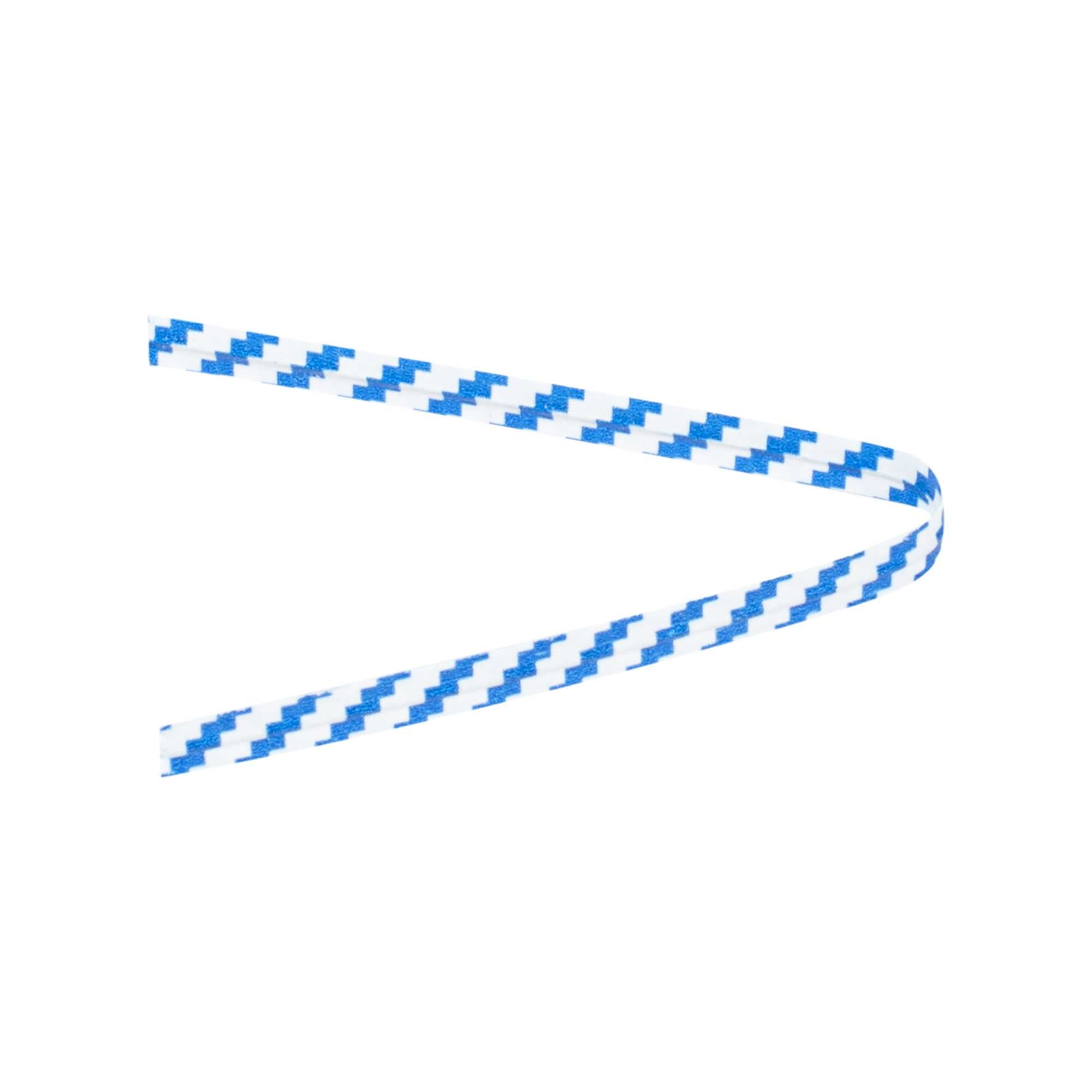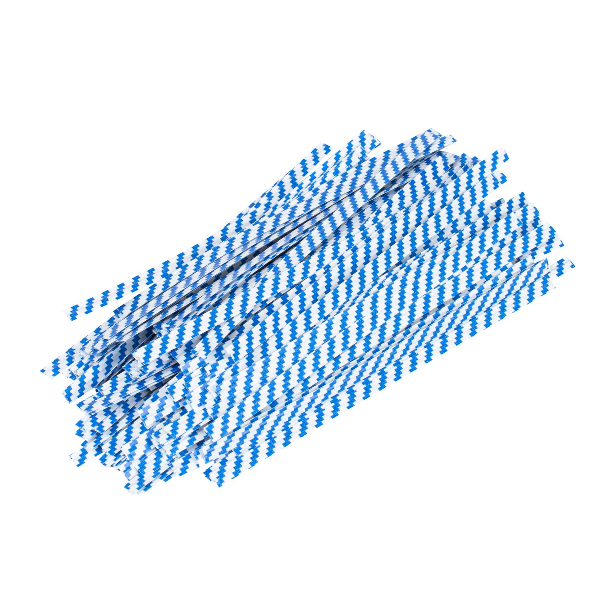 Secure and enhance the presentation of your baked goods with our Bag Tek Blue Stripe Paper Twist Ties / Bag Ties. Featuring a laminated blue stripe design and flush-cut edges, these twist ties offer a clean, professional look for sealing all types of packaging. An internal iron wire core ensures a tight, secure hold that keeps items fresh and protected. The bold blue striping adds a visual accent and identification that pairs well with a variety of bakery and retail packaging themes. Ideal for breads, pastries, candies, gifts, and more, these 4-inch twist ties combine functionality and visual appeal. Sold in a 5,000 count box.