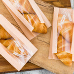 These bread bags feature a stylish wheat design, showcasing your baked goods beautifully and complementing the charm of your bakery. They are sold in various colors to cater to your needs!
