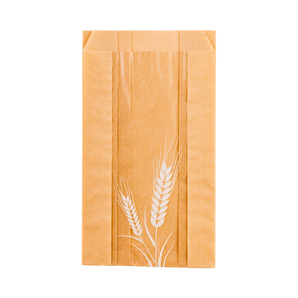BROWN PAPER BREAD BAG - MICRO-PERFORATED, GREASEPROOF, WHEAT PATTERN