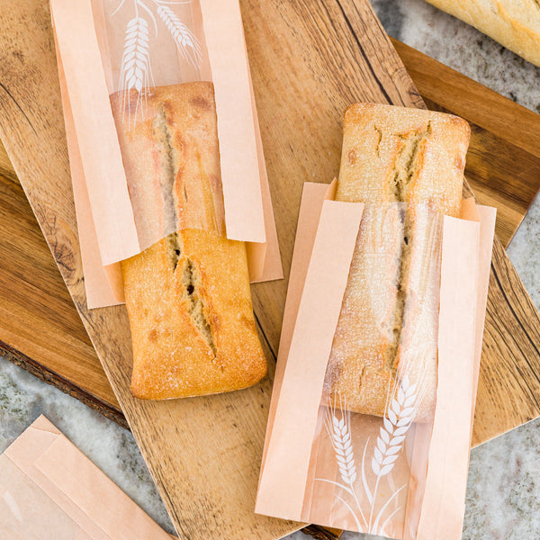 These paper bread bags include a micro-perforated plastic window, ensuring optimal airflow to keep your fresh-baked bread crisp and flavorful. The clear window lets customers get a sneak peek of the contents!