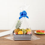 These plastic gift bags offer a crystal clear finish, ensuring your gift baskets are displayed in all their glory, igniting intrigue and appreciation. Perfect for showcasing the contents at any event or retail display.