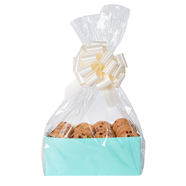 These plastic gift bags offer a crystal clear finish, ensuring your gift baskets are displayed in all their glory, igniting intrigue and appreciation. Perfect for showcasing the contents at any event or retail display.