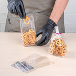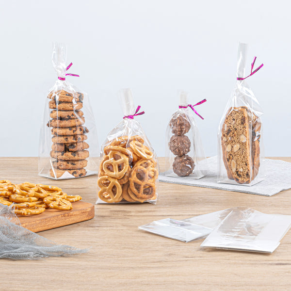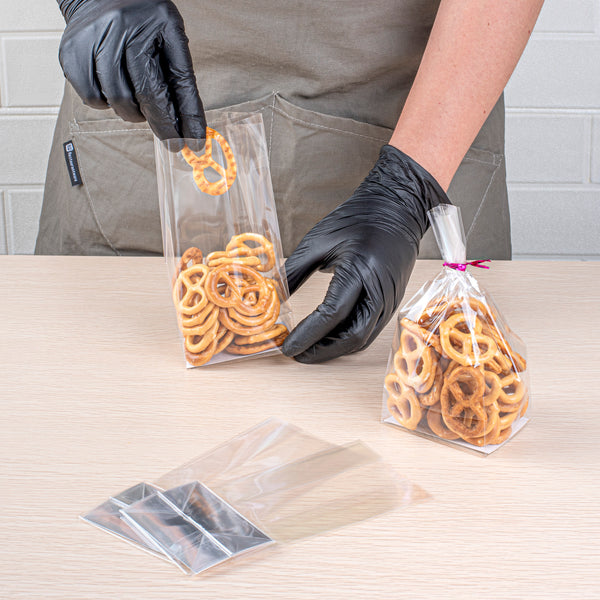 Wrap up your macrons, cookies, and other baked goods in our Bag Tek Clear Plastic Gusset Bags. Designed with a clear finish, these macaron bags display your sweets to give your fare a delicious look. These plastic bags have a flat, gusseted bottom and paper insert which makes them sit up perfectly on your display bins, shelves, or racks. Perfect for locking in freshness, these gusset bags are heat sealable to preserve the taste of your treats. Made from premium plastic, these clear treat bags are recyclable for a quick and eco-friendly cleaning process at your bakery, candy shop, or catered event. These clear candy bags can be sealed with our impulse sealer (SKU: RWT0243 or RWT0244) to maintain the flavors of your baked goods. Measuring 3 inches long by 2 inches wide by 6.5 inches tall, these heat seal cookie bags are perfect for all kinds of bite-sized treat packaging. Sold in a 100 count box. Impulse sealer is available and sold separately. Sold in a 100 count box.