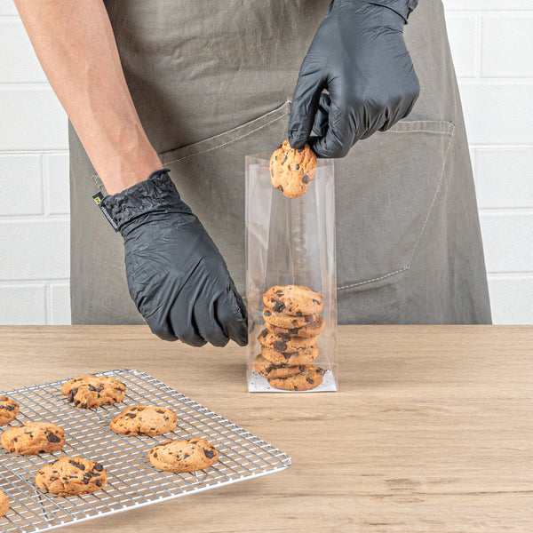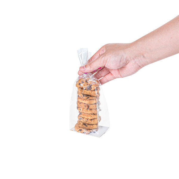 Perfectly package fresh cookies or assorted candies with our Bag Tek Clear Plastic Gusset Bags. With a paper insert on the base, these flat bottom plastic bags stand upright when filled with treats. These plastic snack bags have a heat sealable design that preserves the freshness of baked goods and helps create a tamperproof seal to easily identify if bags have been tampered with. With durable gussets, these heat sealable plastic bags expand with ease to store a variety of tasty snacks or desserts. Featuring a crystal clear finish, these clear plastic treat bags brilliantly showcase the freshness of treats at your deli, candy shop, or bakery. Crafted from premium plastic, these food bags are conveniently disposable and recyclable to streamline the cleaning process at your foodservice establishment. These gusset bags are shipped flat for quick and easy storage in your kitchen or prep area. Measuring 3 inches in length and 8 inches in height, these clear snack bags are ideal for packaging candies, nuts, and other small treats. Sold in a 100 count box.