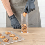 - Flat bottom for bags to stand upright while packing your baked goods