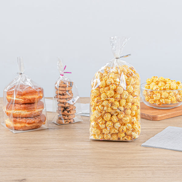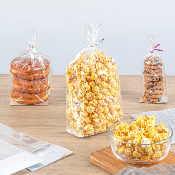Beautifully showcase tasty treats with our Bag Tek Clear Plastic Gusset Bags. These gusset bags have a heat sealable design to lock in the freshness of your cookies, chocolate, popcorn, and other flavorful snacks. Featuring a paper insert on the base, these sturdy flat bottom bags provide your treats with extra support which allows them to easily stand upright on shelves or tabletops. These heat sealable bags have a clear finish to provide customers with a full view of your mouthwatering snacks or desserts. Made with gussets, these durable plastic bags easily expand to conveniently carry a number of different sweets. These clear candy bags are made from food-safe plastic which makes them great for storing food at your candy store, cafeteria, bakery, or other foodservice establishment. Measuring 5 inches long by 3 inches wide and 12 inches tall, these disposable snack bags are recyclable for quick and effortless cleanup after use. These plastic gusset bags are shipped flat for space-saving storage in your establishment and are sold in a 100 count box.