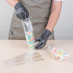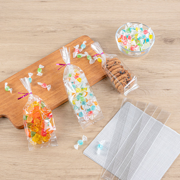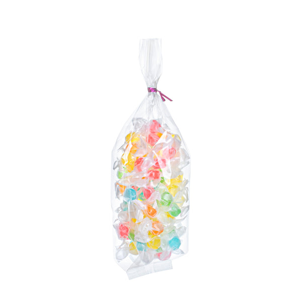Securely store candies, chocolates, nuts, and other bite-sized snacks with our Bag Tek Clear Plastic Gusset Bags. With a heat-sealable design, these plastic snack bags lock in freshness for a longer period. Designed with gussets on the side, these durable plastic bags expand easily to fit all types of sweets. Featuring a high-clarity transparent finish, these clear plastic treat bags provide customers with complete visibility of your fresh desserts, snacks, or fruits. These gusset bags are conveniently recyclable for quick and hassle-free cleanup at your bakery, candy shop, diner, or other food service establishment. Measuring 2.5 inches long by 2 inches wide and 9.75 inches tall, these transparent snack bags are shipped flat for easy storage in your kitchen. Sold in a 100 count box.