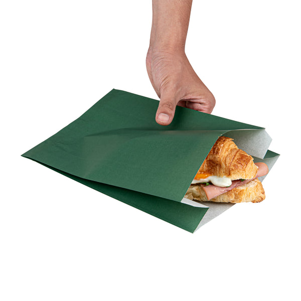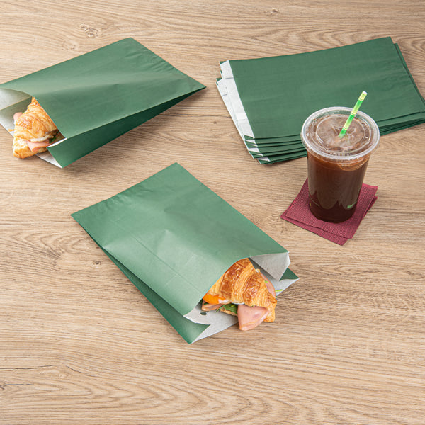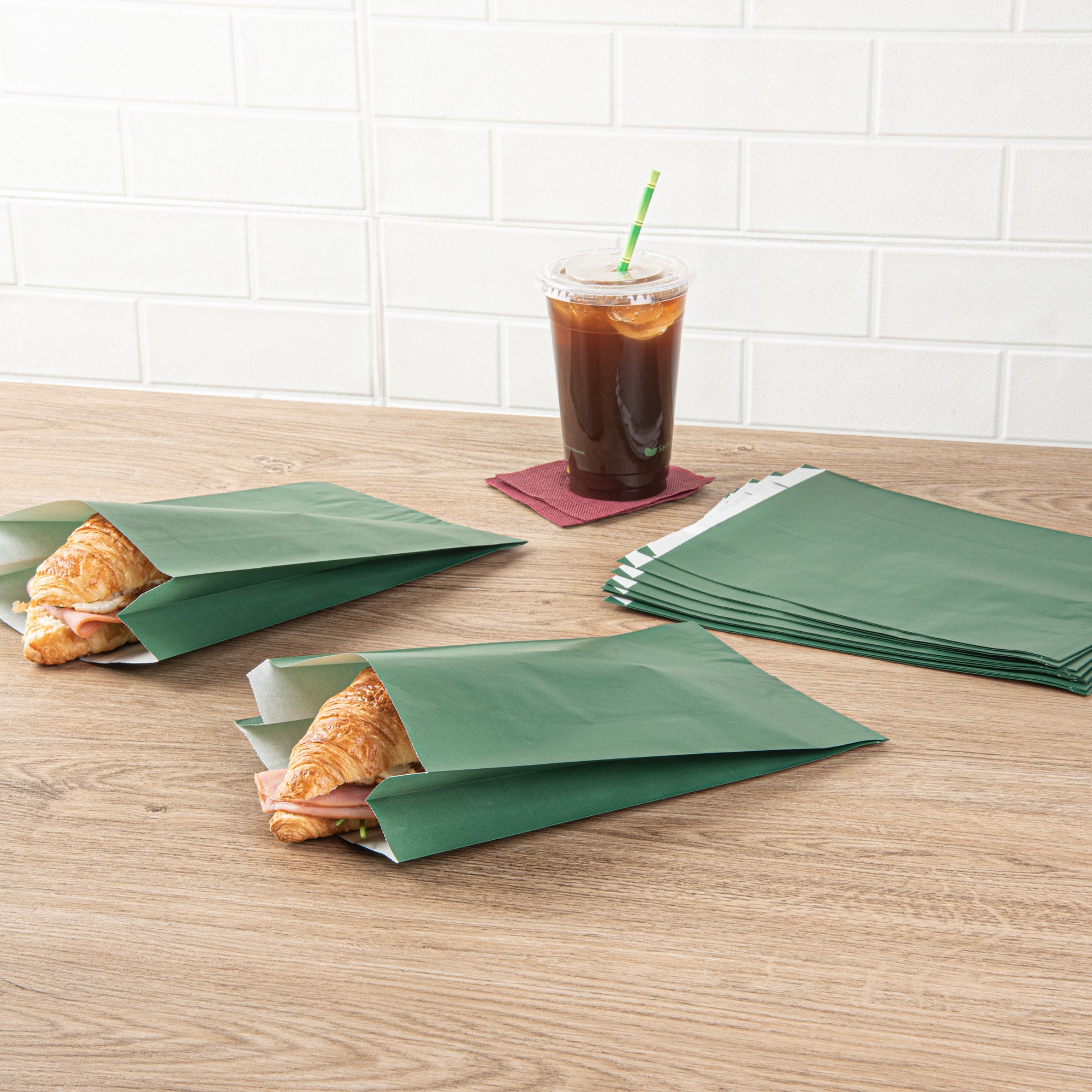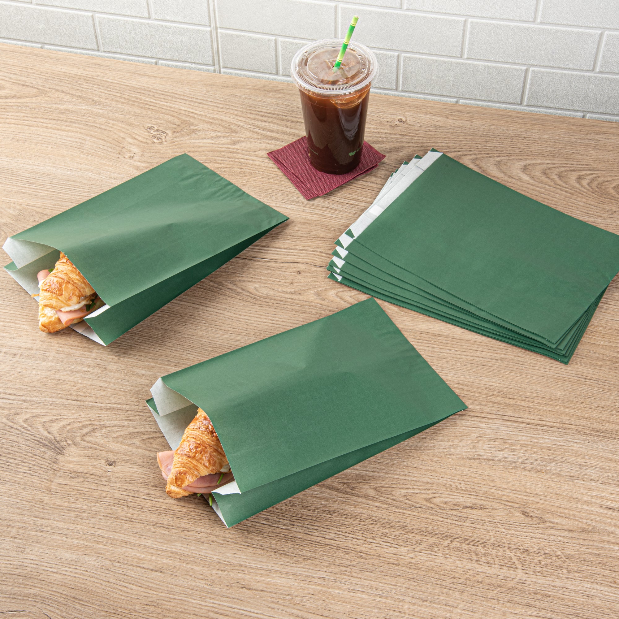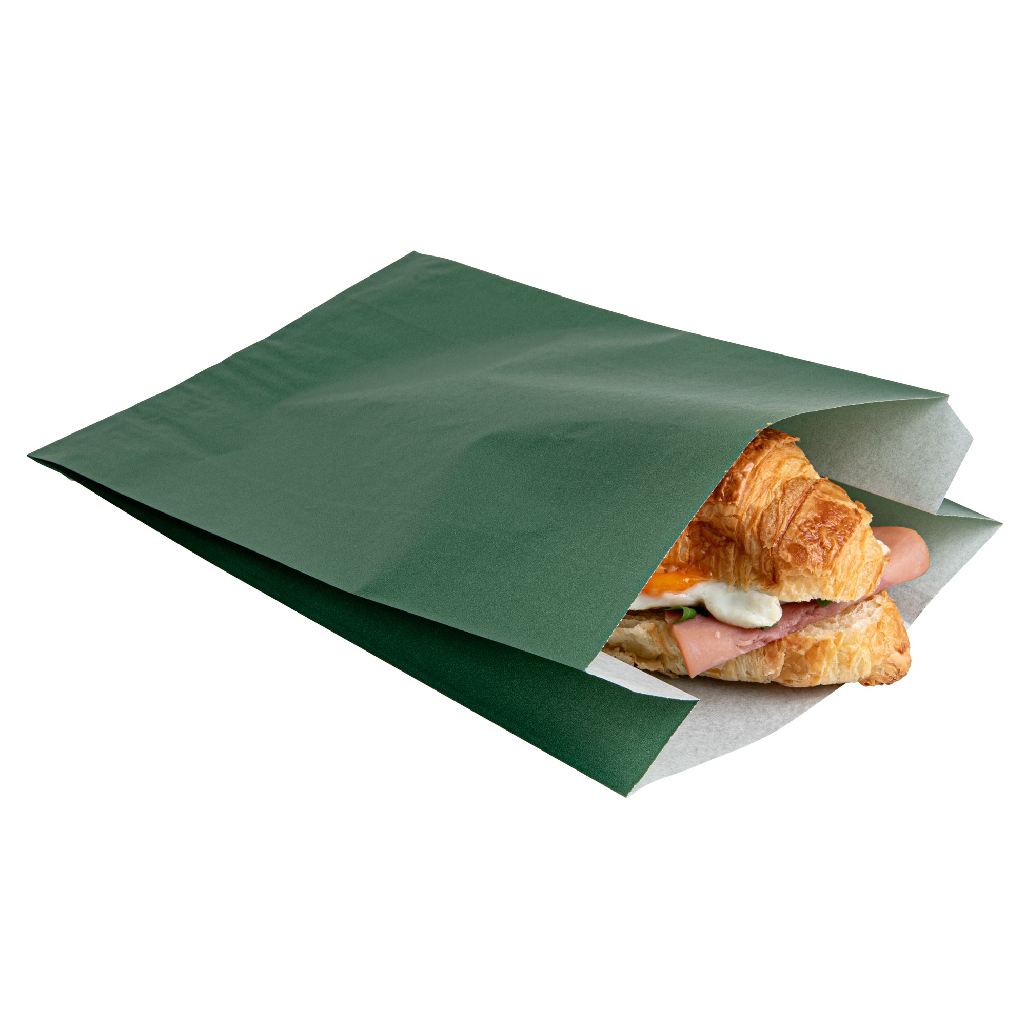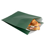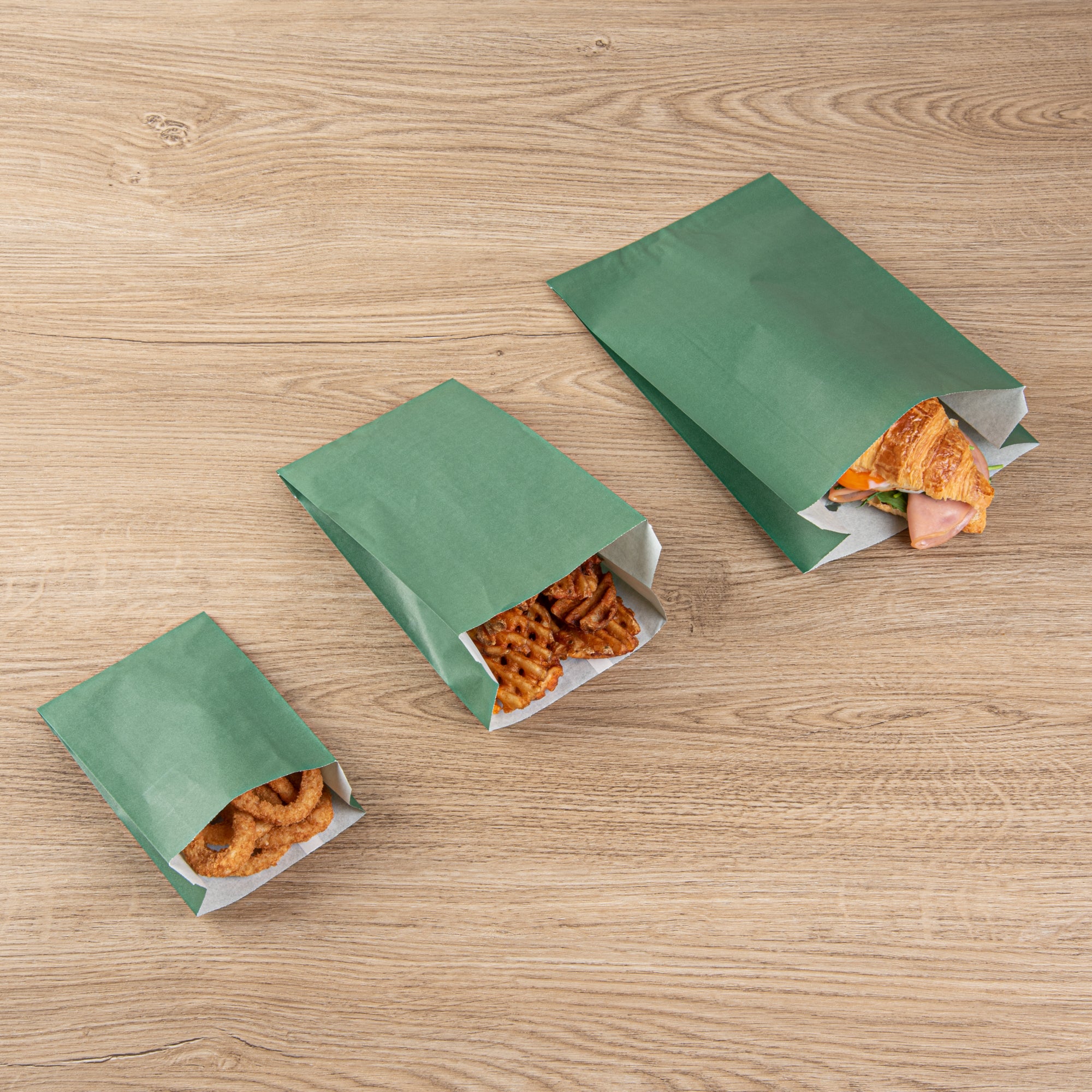 Serve up your delicious finger foods using our Bag Tek Forest Green Paper French Fry / Snack Bags. With a convenient open-pouch style, these snack bags let your customers enjoy their snacks on the go. Crafted to be greaseproof, these paper food bags are ideal for serving items like crispy onion rings or crunchy fries. Featuring an extended lip, separating these goodie bags to speed up your service is easy. These French fry bags are durable and sturdy enough to pack various food items without tearing. The forest green exterior of these treat bags adds flair to the look of your packed foods, making them appealing to patrons. Each sandwich bag measures 7 inches in length by 3 inches in width by 11 inches in height. Sold in a 100 count box.
