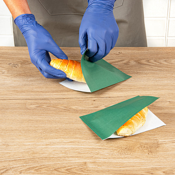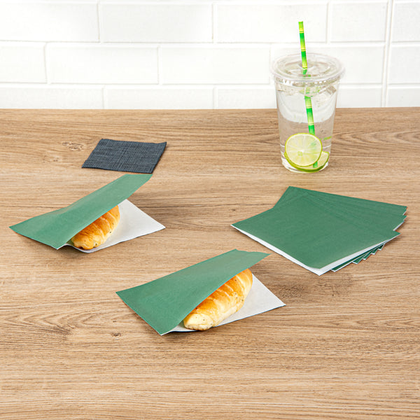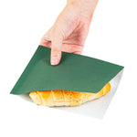 Optimize your bakery’s packaging with tear-resistant bakery bags. Our Green Greaseproof Paper Bags are crafted from greaseproof paper, which prevents oils and grease from seeping through, ensuring hands and surfaces remain spotless. With a convenient double open design, these disposable bakery bags simplify serving and packaging sandwiches and chips, making them perfect for busy cafes. Their tear-resistant paper construction secures snacks during transportation, providing peace of mind to caterers and foodservice professionals. Measuring 6.25 inches by 4.75 inches, these compact bags are ideal for small pastries, cookies, and grab-and-go items. The elegant forest green color enhances the presentation of your baked goods, adding a touch of sophistication to any display. Stock your bakery with these versatile greaseproof paper bags today to maintain cleanliness and style. Each order includes 100 Green Greaseproof Paper Bags.