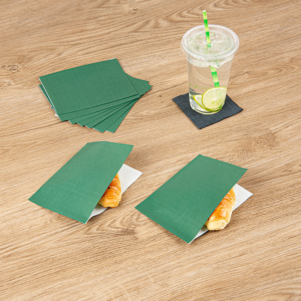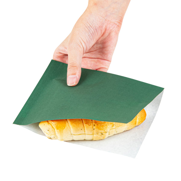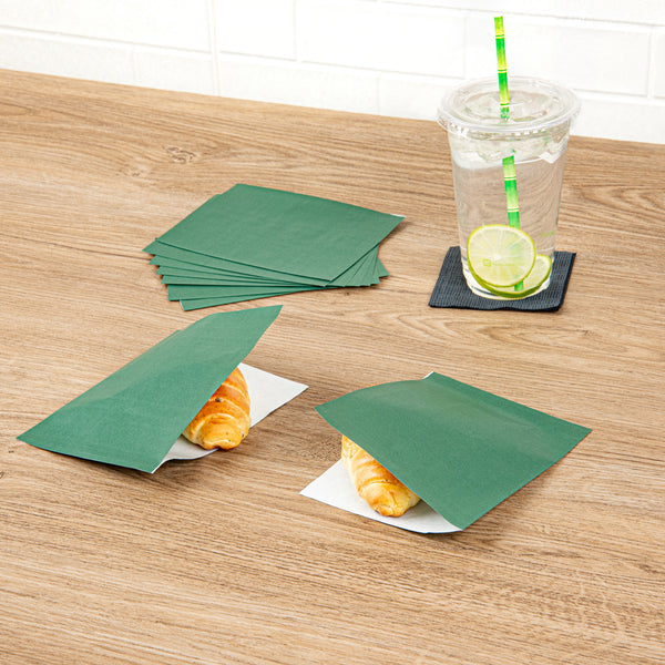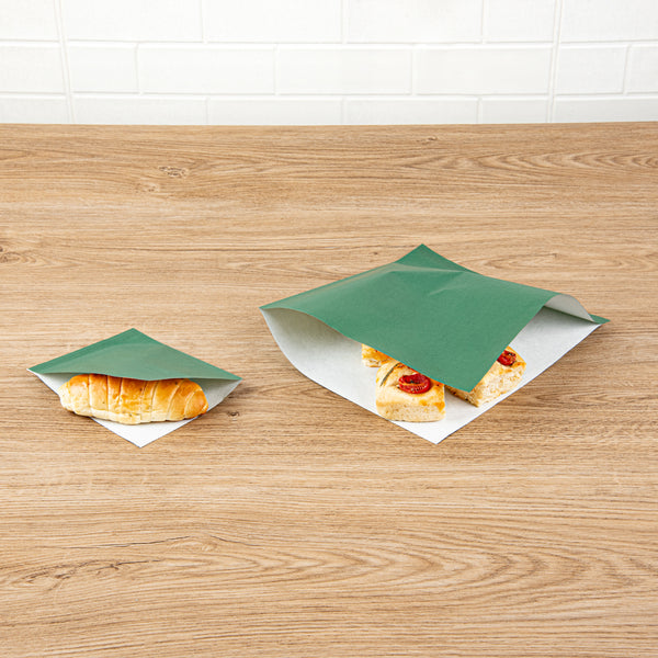 FOREST GREEN PAPER SMALL DOUBLE OPEN BAG - GREASEPROOF