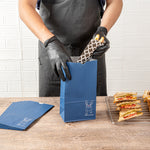 Pack your carry out meals using our Bag Tek Frenchie Paper Bags. Crafted from high-quality paper, these disposable deli bags are durable with a grease-resistant coating to keep away oily mess. These paper deli bags are skilled in securely containing up to 6 pounds of food and snacks. Each merchandise bag features an open-top design for quick entry, and can easily be folded in for hassle-free mobile food handling. With a sturdy flat bottom, these disposable lunch bags stand upright, offering a handy solution for packing food or groceries. These popcorn bags sport a tasteful Frenchie design, coherently blending with the rest of your takeaway supplies. To easily store your leftovers, these disposable paper bags are freezer-safe. These paper take out bags are disposable for quick cleanup. Each take out bag has a capacity of 6 pounds and measures 6 inches in length by 3.5 inches in width by 10.75 inches in height. Shipped in a 100 count box.